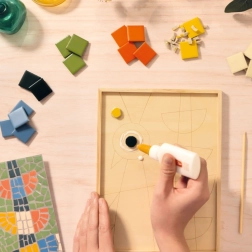 Ustvarite svojo dekorativno mozaiko s kreativnim kompletom znamke DJECO. Popoln set ATELIER 73 vključuje barvne ploščice, lepilo, orodja in podlago, zato lahko takoj začnete ustvarjati. Idealno za začetnike in napredne, ki želijo razvijati fino motoriko, potrpežljivost in smisel za podrobnosti.