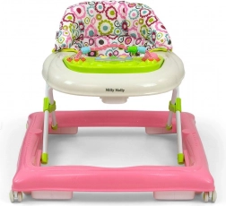 Otroški hojček Milly Mally Patrol Flower je idealna izbira za aktivne dojenčke od približno 6 mesecev do 12 kg. Tristopenjska nastavitev višine sedeža omogoča prilagoditev hojčka otrokovi postavi, tako da se nožice udobno dotikajo tal. Mehko, oblazinjeno naslonjalo in materiali, ki se enostavno čistijo, poskrbijo za vsakodnevno udobje.