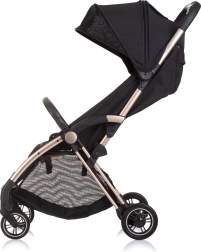 Za maksimalno udobje otroka ne manjka 3 položaji naslonjala, nastavljiva opora za noge in velika strehica z zračnim delom ter žepom za drobnarije. Starši bodo cenili ročaj oblečen v eko usnje, velik shranjevalni koš ter hitro snemljiva kolesa z vzmetenjem in povezano zavoro za varno ustavljanje.