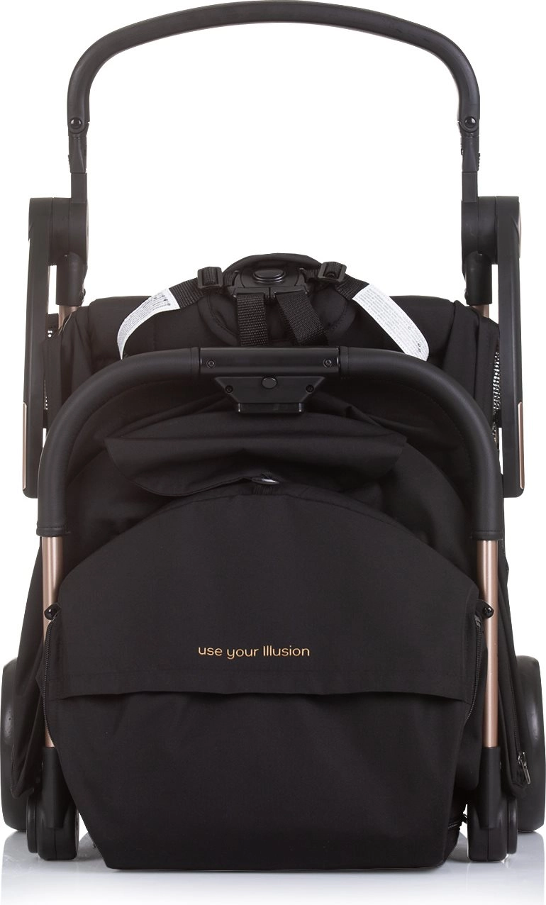 Uživajte v udobnih sprehodih z vozičkom CHIPOLINO Illusion, ki združuje stabilno moderno ogrodje s kompaktnim zlaganjem in odlično vodljivostjo. Primeren je za novorojenčke in večje otroke do 22 kg, s 5-točkovnim pasom in odstranljivim varovalnim lokom za varnost in enostavno nameščanje.