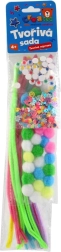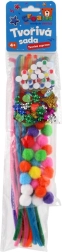 Vsako pakiranje vsebuje drugačno kombinacijo barv in dodatkov, zato je rezultat vedno edinstven. Komplet je odličen za domače ustvarjanje, šolske projekte in krožke. Za dokončanje izdelkov zadostuje navadno lepilo.