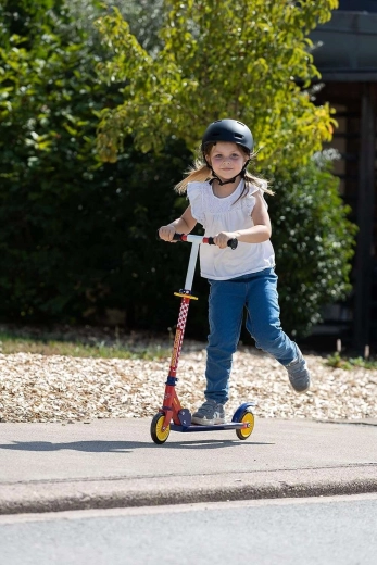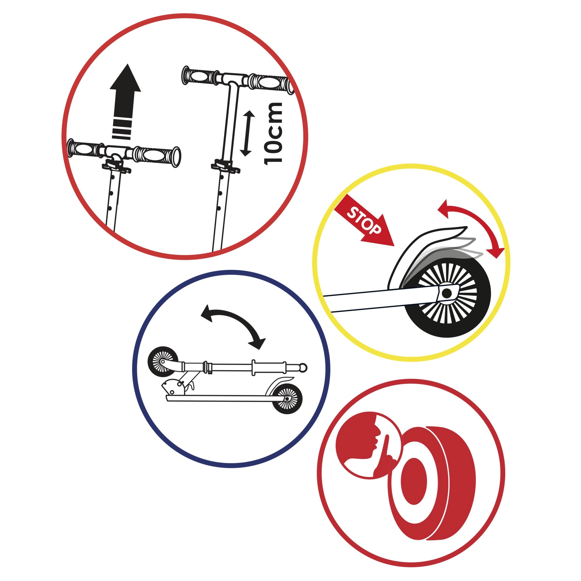 Univerzalna barvna izvedba z grafiko Strele bo všeč fantom in dekletom. Tiha, nedrseča kolesa zagotavljajo uglajeno vožnjo po pločniku in stabilnost. Skiro je idealen za vsakodnevno zunanjo zabavo in razvoj motorike.