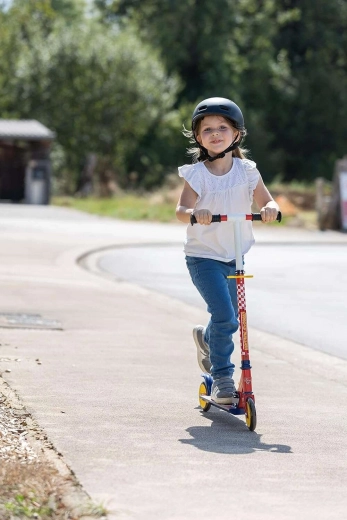 Lahek in vzdržljiv otroški skiro z motivom Avtomobili CARS – Strela McQueen bo navdušil vsakega malega voznika. Ima aluminijasto konstrukcijo, nastavljivo krmilo (73–83 cm), nedrsečo široko stopnico, tiha kolesa in nožno zavoro. Največja nosilnost 50 kg, idealen od 5 let. Opozorilo: poškodovana embalaža, manjše praske/okruški.