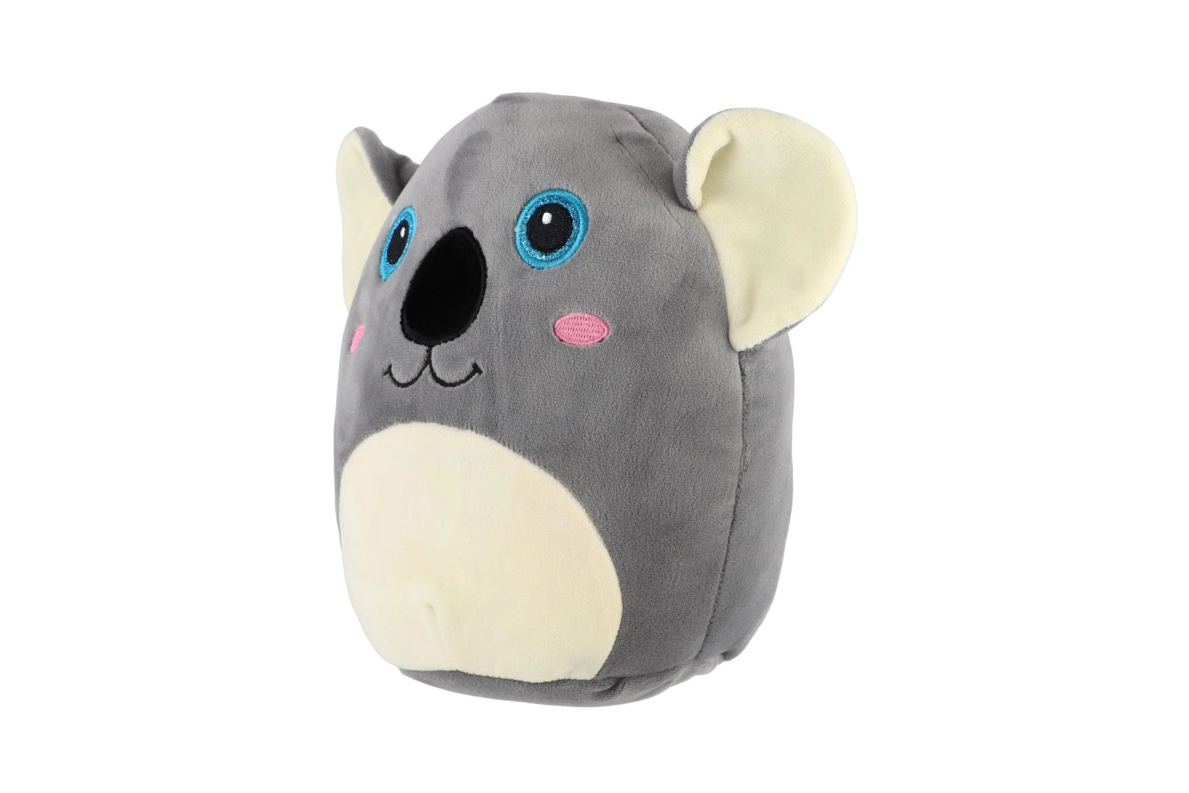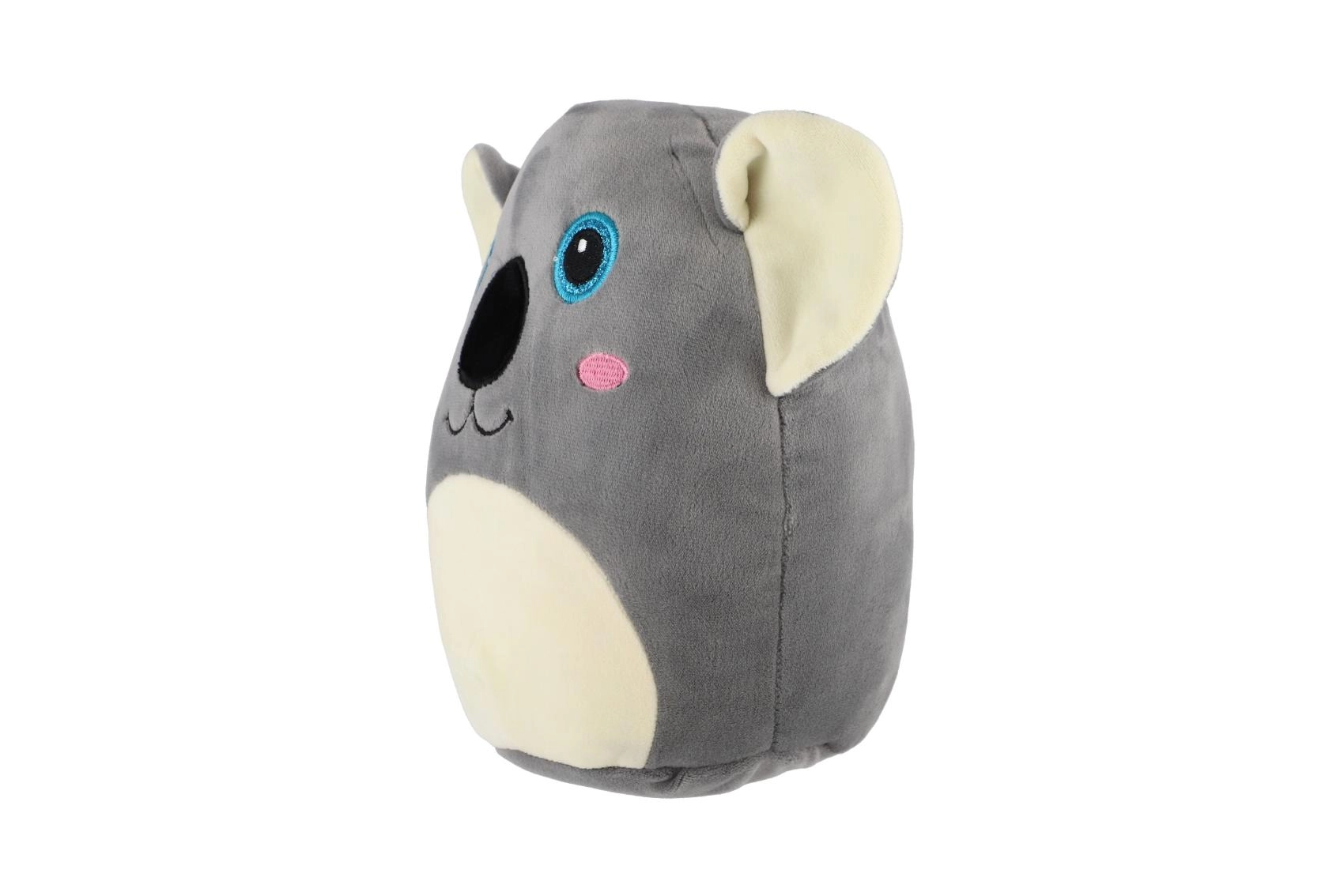 Zaobljena, blazinasta silhueta odlično sede v naročje – idealna za spanje, potovanja in kot dekoracija otroške sobe.