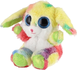 Ta barviti plišasti zajček bo osvojil srca otrok in odraslih. Nežen, na dotik prijeten material kar vabi k crkljanju, medtem ko izrazite modre, bleščeče oči in mavrično kožušček igrački dajejo igriv in čaroben videz. Zaradi sedečega položaja je odlična dekoracija za otroško sobo.