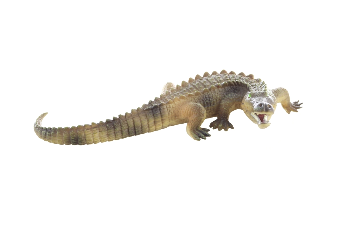 Ta plastična figurica krokodila otrokom prinaša realističen vpogled v svet živali. Zvesti detajli, kot so izrazite luske, dolg rep in odprta čeljust z zobmi, spodbujajo domišljijo in tematsko igro.