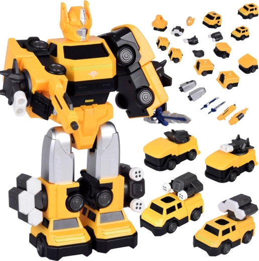Ta futuristični magnetni transformer navduši z izrazito rumeno‑črno barvno kombinacijo in robustno izdelavo. Zahvaljujoč močnim magnetnim konektorjem otroci hitro preoblikujejo robota in ustvarijo svoje junaške prizore. LED osvetlitev v spodnjem delu doda akciji realistično vzdušje.