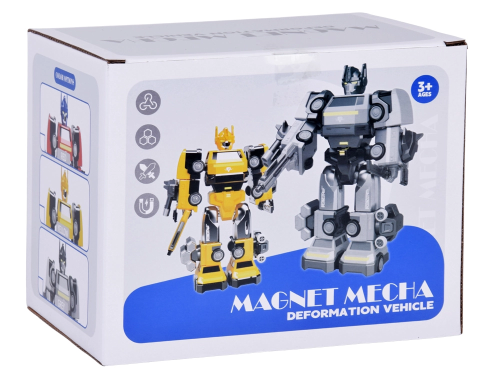 Magnetni robot 2v1 navduši z modernim dizajnom, izrazitimi barvami in robustno izdelavo, primerno za vsakodnevno igro. Zahvaljujoč močnim magnetom otroci preprosto sestavijo in razstavijo dele robota ter ustvarijo lastne junaške scenarije. LED luči v stopalih poudarijo akcijsko vzdušje in vsako misijo spremenijo v nepozabno doživetje.