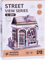 Ta podrobna lesena 3D sestavljanka vam omogoča postaviti realistično mini knjigarno, polno knjig in drobnih dekoracij. LED osvetlitev po temi ustvari prijetno atmosfero in poudari domišljene detajle, vidne skozi okna. Model odlično služi kot izvirna notranja dekoracija in kot darilo za ljubitelje modelov in ustvarjalce.