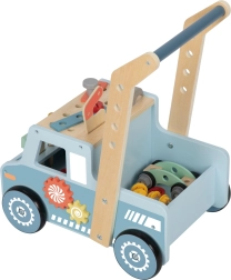 Ta pametni hojnik v obliki modrega tovornjaka je idealen pomočnik za prve korake in hkrati zabavna STEM delavnica. Robustna lesena konstrukcija nudi stabilnost, medtem ko vrtljiva zobata kolesa, prenosi in montažne plošče vabijo k odkrivanju principov mehanike ter razvoju koordinacije.