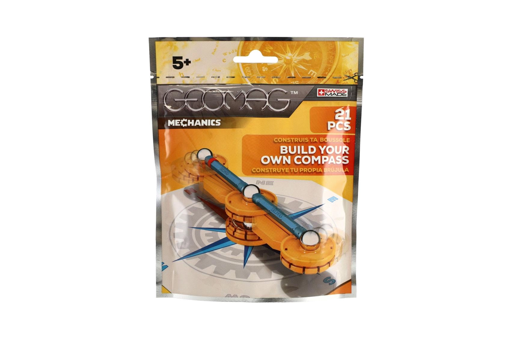 Odkrijte, kako deluje kompas, s konstruktorskim kompletom GEOMAG MECHANICS. Iz 21 delov bodo otroci zlahka sestavili delujoč kompas in se ob tem na zabaven način naučili principov magnetizma in mehanike. Komplet je združljiv z ostalimi seti Geomag, razvija logično razmišljanje, ustvarjalnost in fino motoriko.