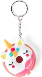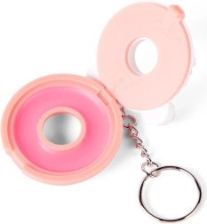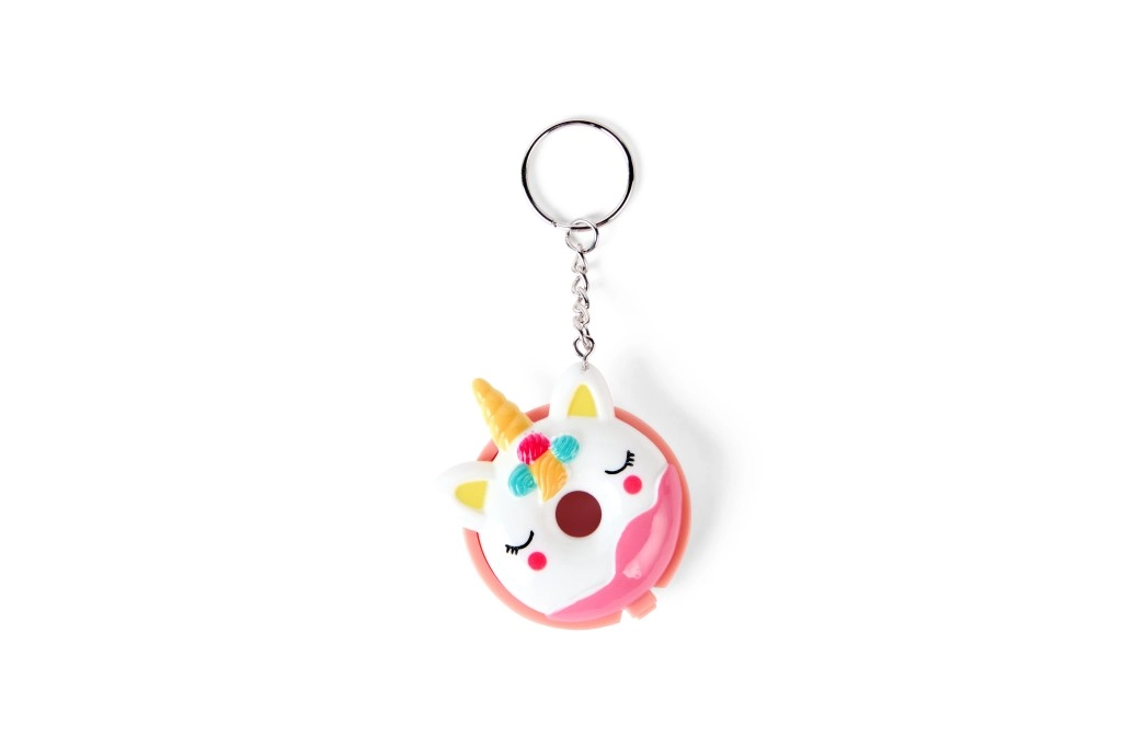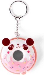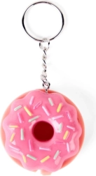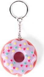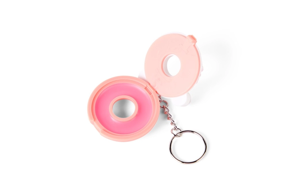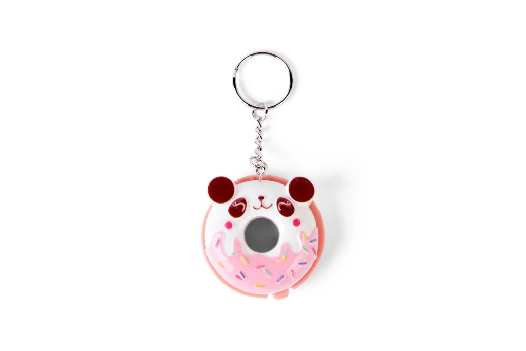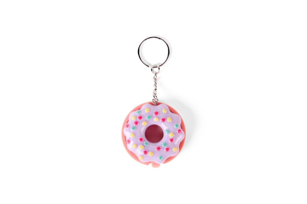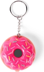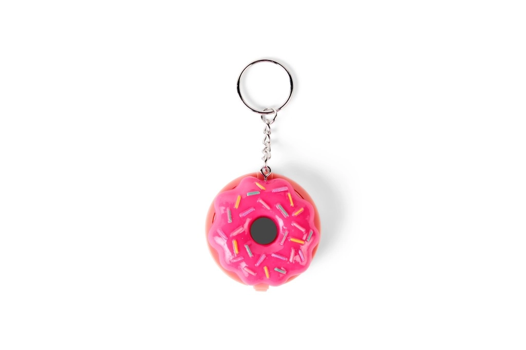 Kompaktno pakiranje v obliki rožnatega krofa z barvnimi “posipi” in kovinskim obeskom za enostavno pripenjanje na nahrbtnik ali ključe.