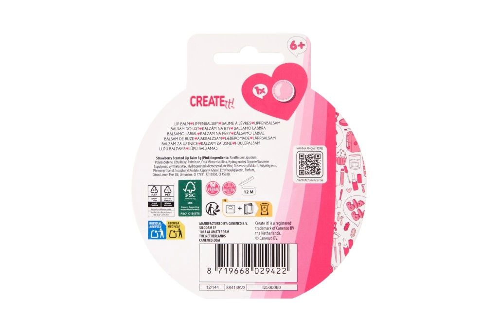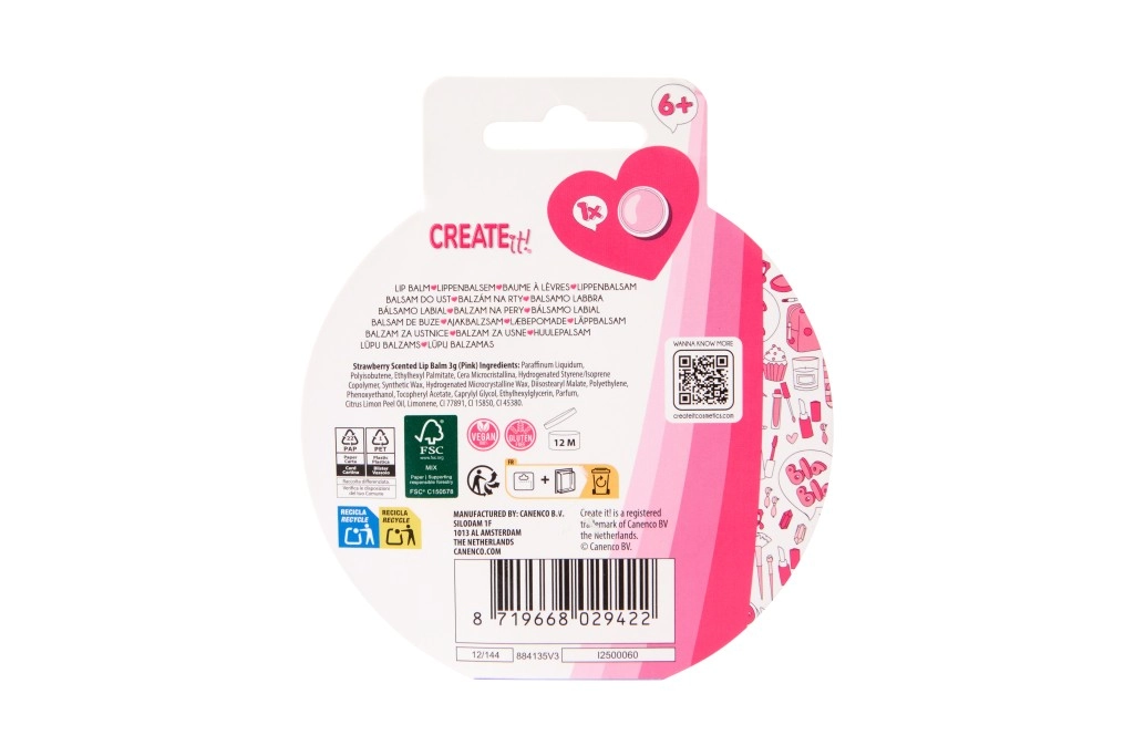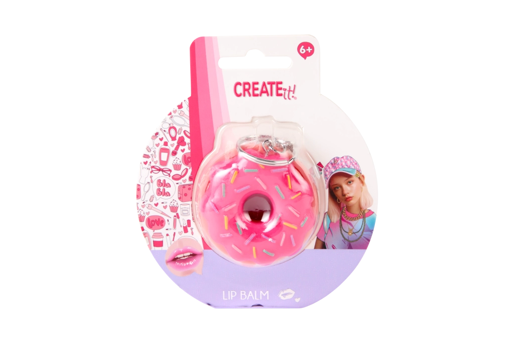 Iščete zabaven in praktičen dodatek? Balzam za ustnice v obliki krofa znamke CREATE IT! združuje igriv dizajn z učinkovito nego. Kremasta tekstura se zlahka nanaša ter pusti ustnice mehke in prožne. Rožnat krof s posipi bodo vzljubili otroci od 6 let in ljubiteljice stilskih pripomočkov.