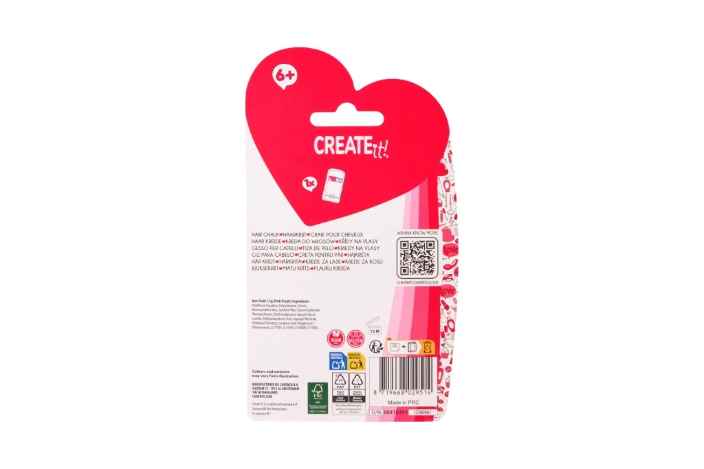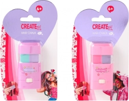 Vesele barve, čiste roke in nič truda. Kompaktne krede za lase CREATE IT! so skrite v praktičnem plastičnem aplikatorju z okencem, ki zagotavlja natančen in hiter nanos brez nereda. Zadošča nekaj potegov in vaši lasje dobijo igrive barvne pramene.