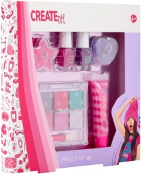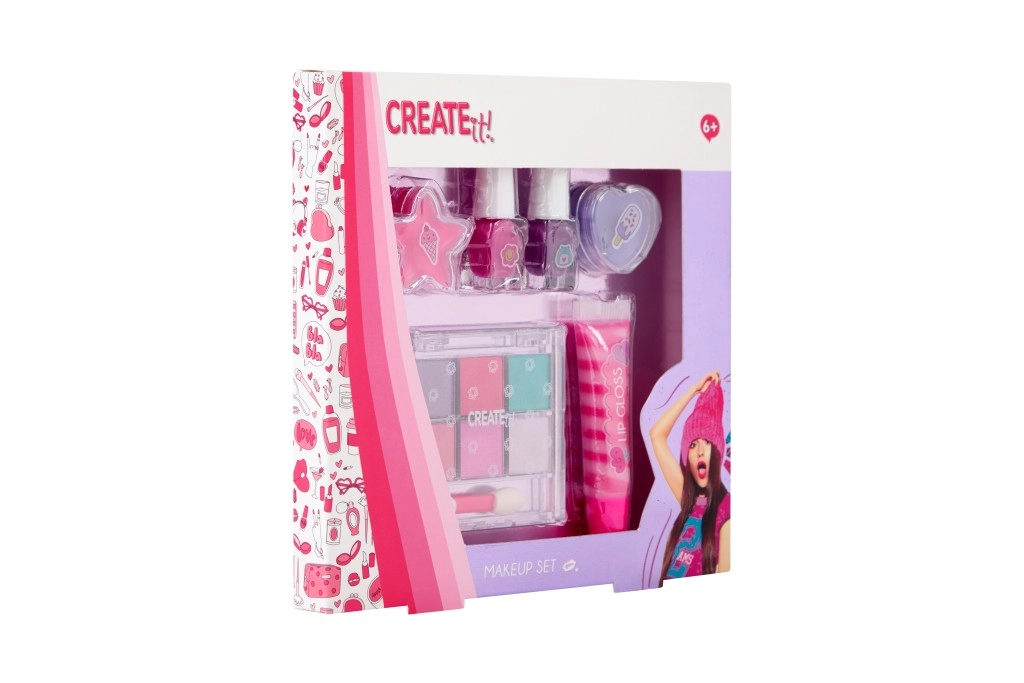 Odkrijte čar barv s kompletom ličil CREATE IT! Lila Turquoise. Otroci se lahko varno preizkusijo v ličenju, ujemajo odtenke in ustvarijo svoj slog – od bleščečih vek do barvitih nohtov in igrivih pramenčkov las.