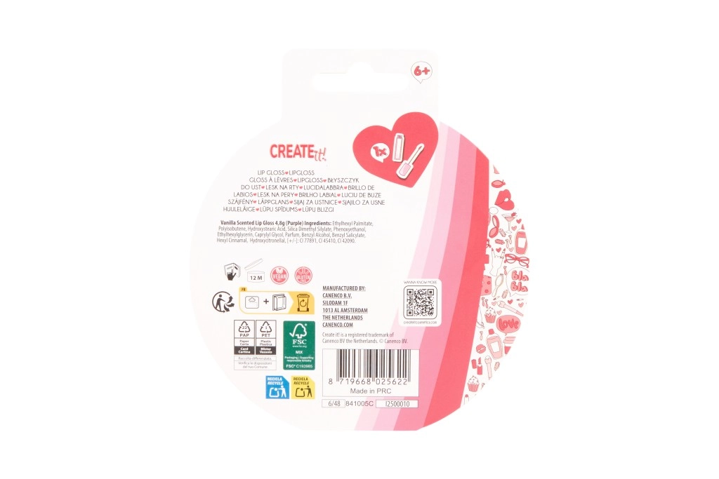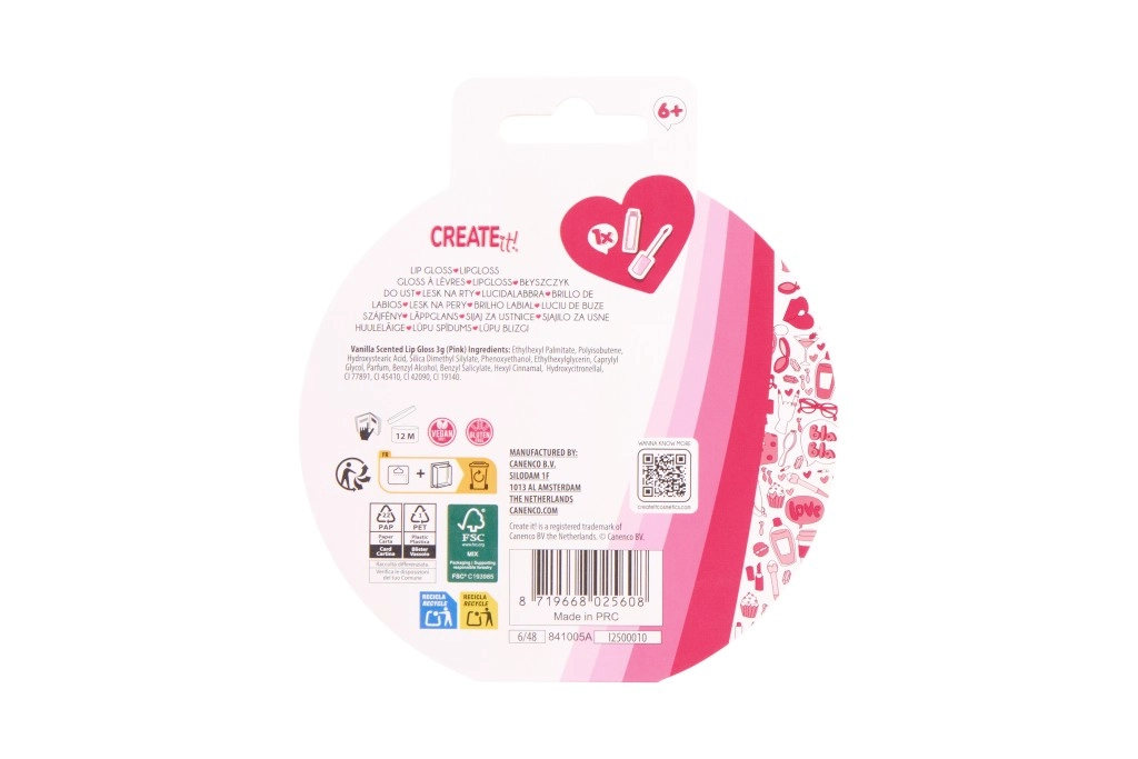 Gloss za ustnice CREATE it! združuje nego in igrivo estetiko v eni simpatični mini kasetki. Vsak kompakt ima prozoren pokrovček s plavajočimi bleščicami, ki očarajo na prvi pogled, medtem ko nežno dišeča vanilijeva formula ustnicam podari mehak sijaj in prijetno hidratacijo.