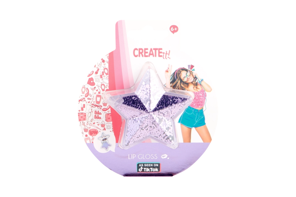 Izbirate lahko med tremi prikupnimi različicami: lip-shape »ustnice«, zvezdica ali srček. Zahvaljujoč snap zapiranju se gloss varno zapre in je zato popoln za na pot, v šolo ali za zabavo s prijateljicami. Odličen tudi kot drobno darilo.