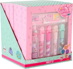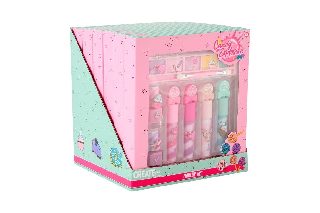 Podarite otrokom svet barv in domišljije s kompletom ličil Candy Create It. Pastelni odtenki, igrive oblike in pregledno urejeno pakiranje spodbujajo ustvarjalnost, fino motoriko ter veselje do preoblačenja in vlogovnih iger. Komplet je zasnovan za osnovno kozmetično igro in enostaven nanos.