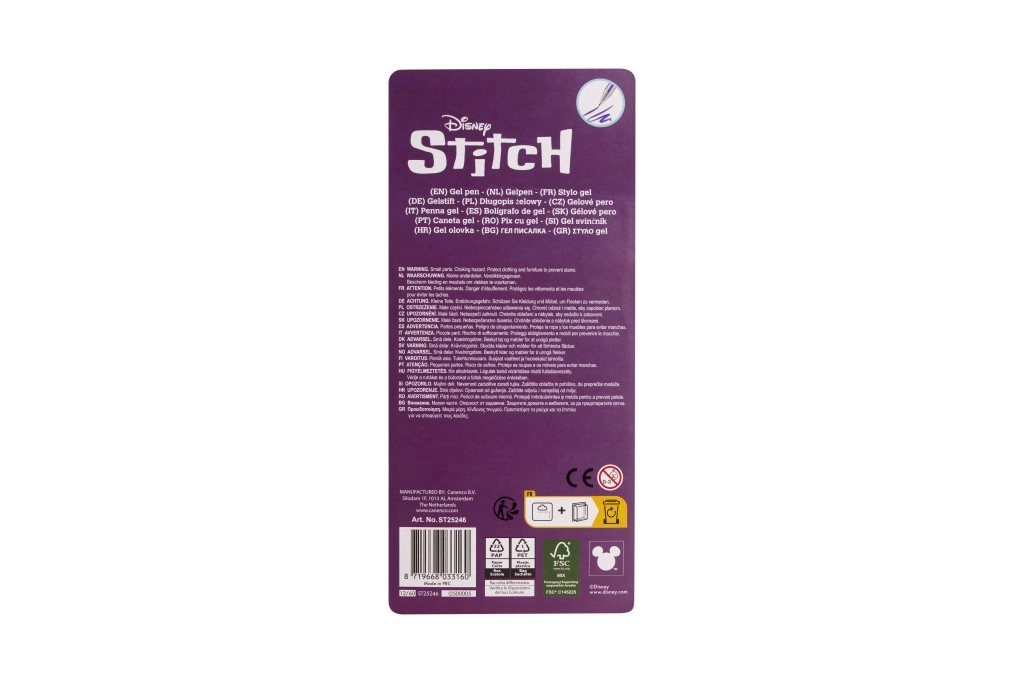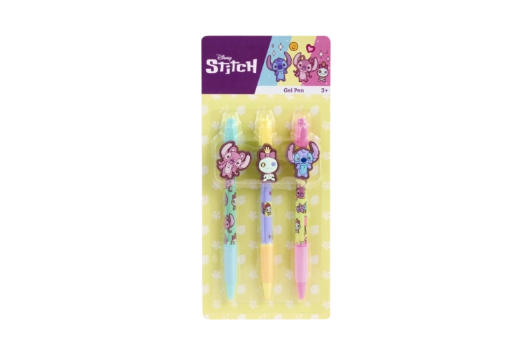 Stilni set gelnih pisal z motivom priljubljenega junaka STITCH bo razveselil šolarje in oboževalce DISNEY. Pisala pišejo gladko, imajo udoben oprijem in praktičen velik sponk za enostavno pripenjanje v zvezek ali peresnico. Idealna za šolo, zapiske in kreativno pisanje.