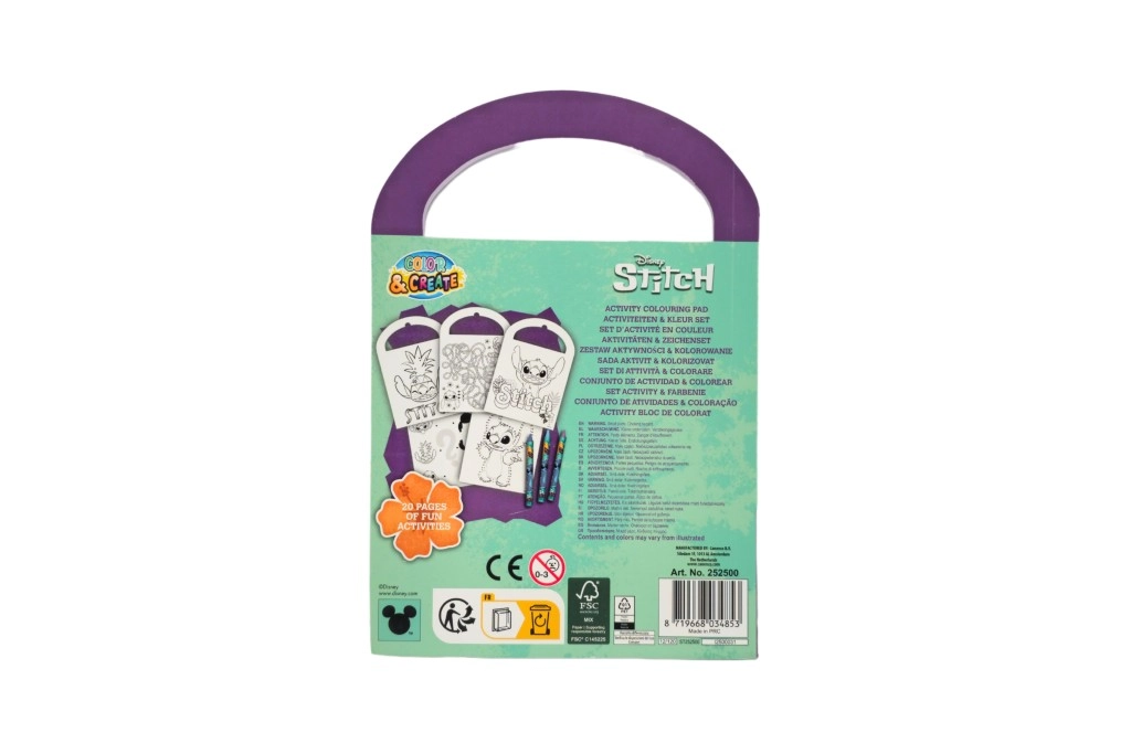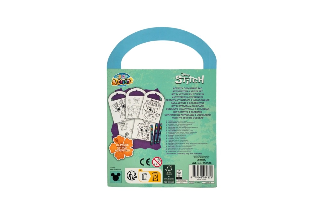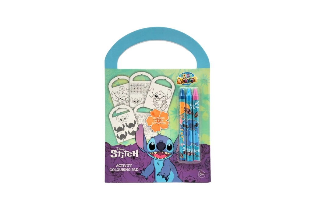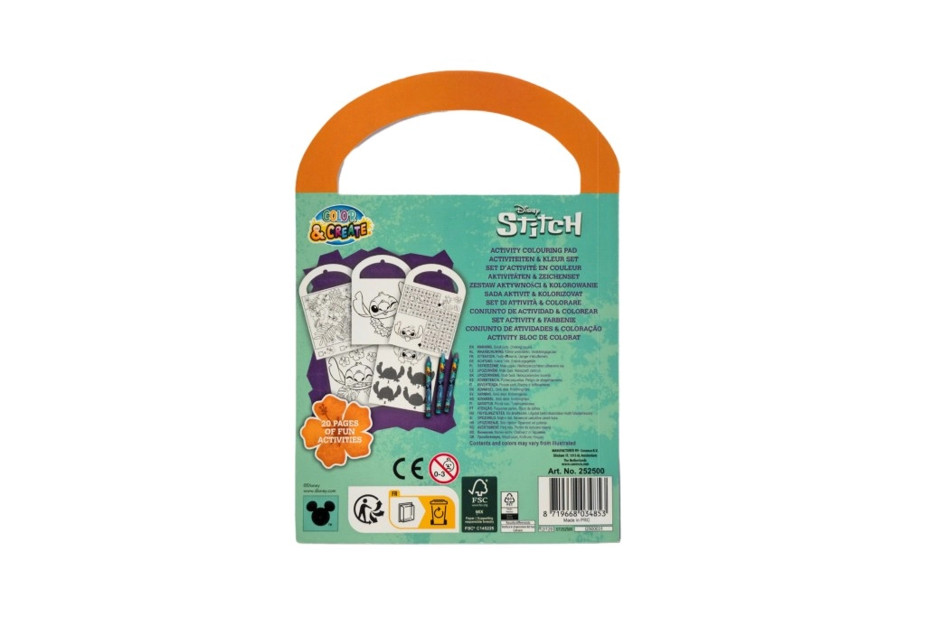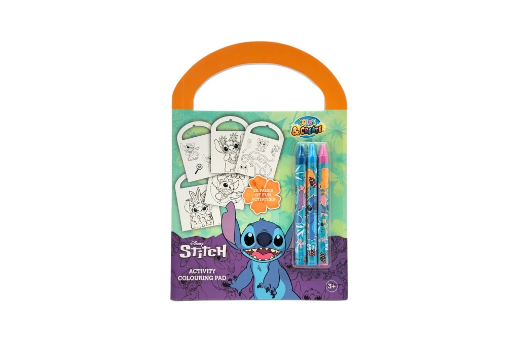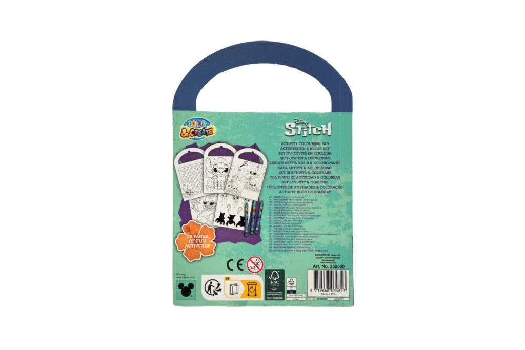 Odkrijte čarobni svet DISNEY STITCH v praktični pobarvanki z aktivnostmi, ki zabava otroke kjerkoli in kadarkoli. Zahvaljujoč kompaktni obliki z vgrajenim ročajem je zvezek idealen za potovanja z avtom, v restavraciji ali na počitnicah.