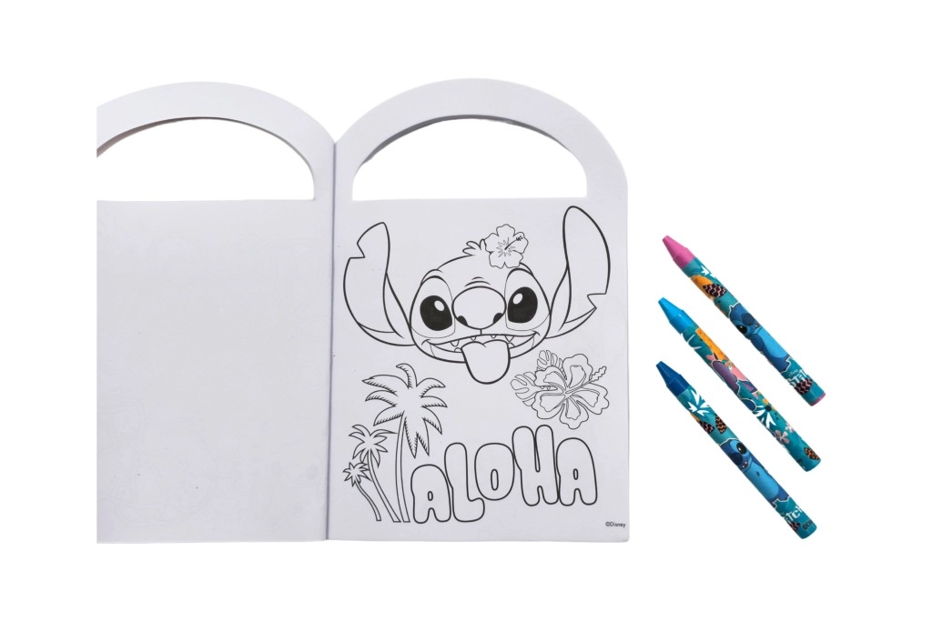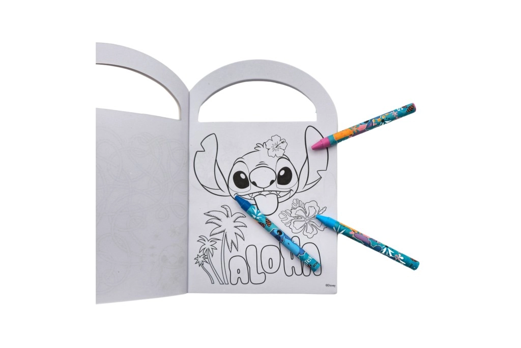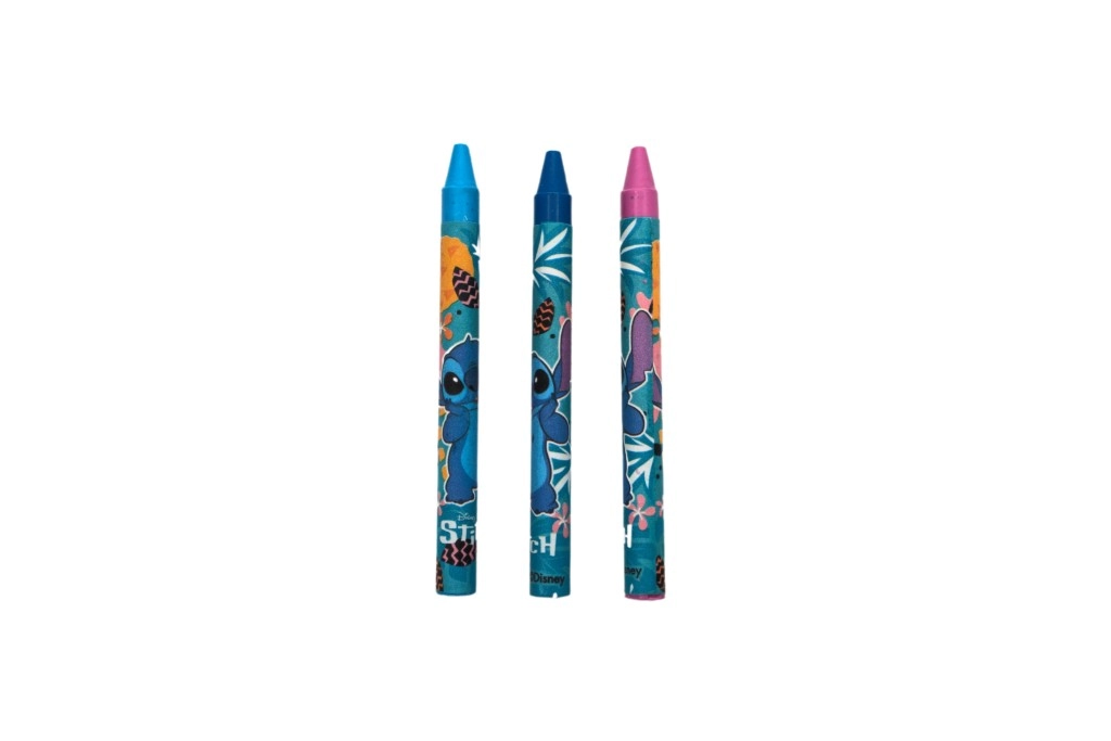 Takoj zabava brez dodatnih pripomočkov – tri voščenke z motivom STITCH za udobno barvanje.