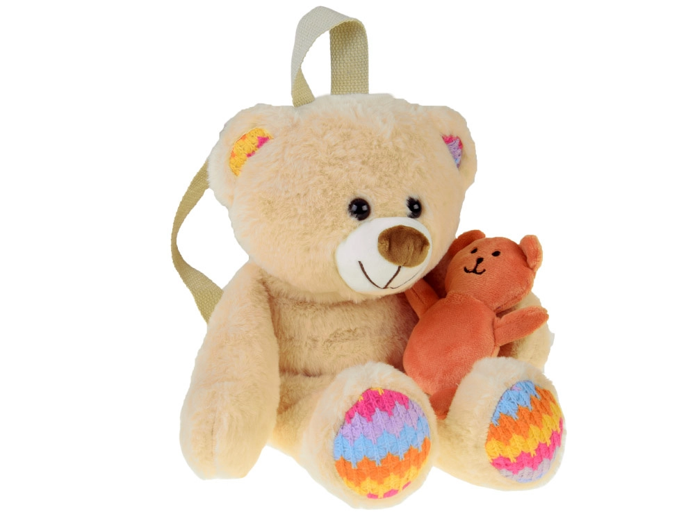 Zahvaljujoč nastavljivim naramnicam nahrbtnik zlahka prilagodite postavi otroka. Lahka zasnova in mehak pliš zagotavljata udobje tudi pri daljšem nošenju. Del paketa je simpatičen mini medvedek, ki nahrbtniku doda igrivo, darilno vrednost.