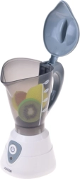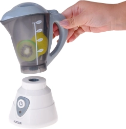 Otroški namizni mešalnik je odličen dodatek v vsako otroško kuhinjico. Posnema pravi aparat, zato je igra še zabavnejša in bolj realistična. Vrč s pokrovom je odstranljiv, ima priročen ročaj in merilno lestvico do 200 ml. Po pritisku gumba ON/OFF se prižge rdeča LED, v notranjosti se zavrtijo simulirana rezila in mešalnik oddaja avtentičen zvok.