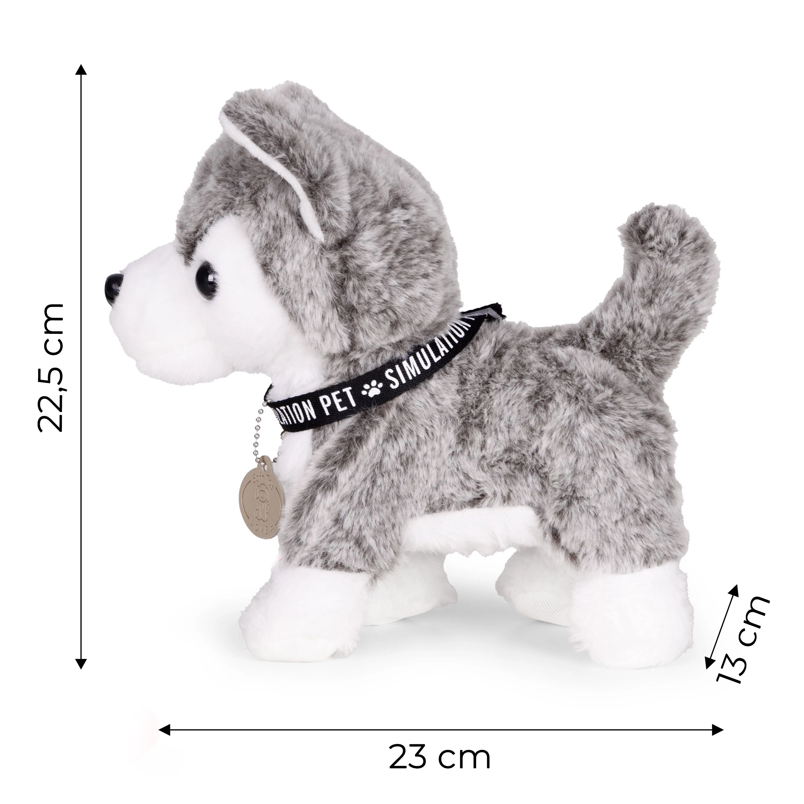Prisrčen interaktivni kužek husky na povodcu prinaša otrokom od 3 let veliko zabave. Ob pritisku na gumb hodi, maha z repom, premika glavo in predvaja več kot 20 melodij. Priloženi sta posodica in priboljški za igro hranjenja. Mehka, prijetna dlaka vabi k crkljanju, igra pa spodbuja empatijo in odgovornost.