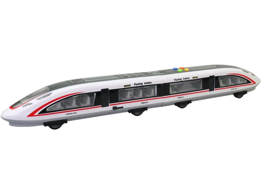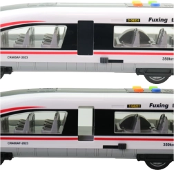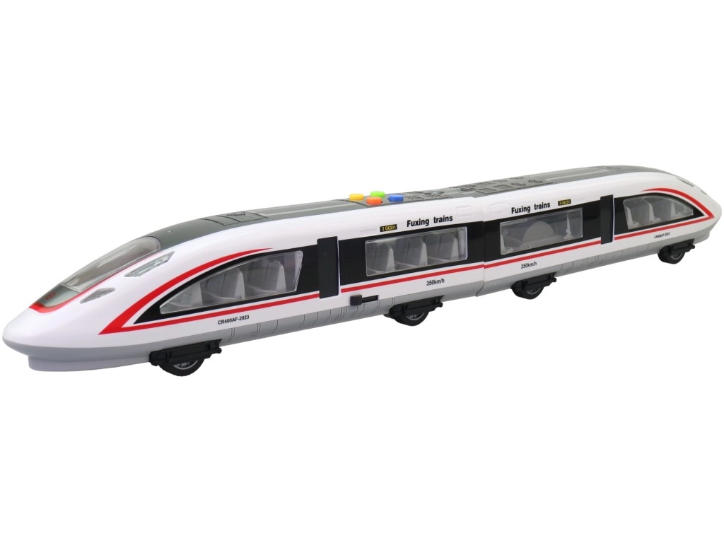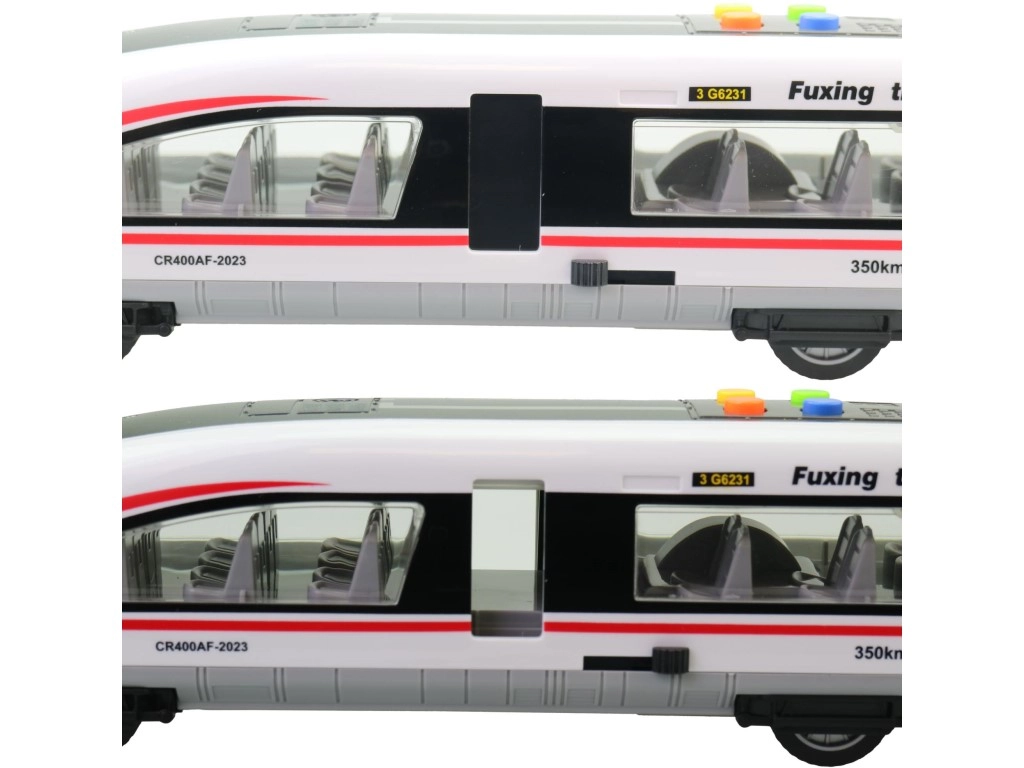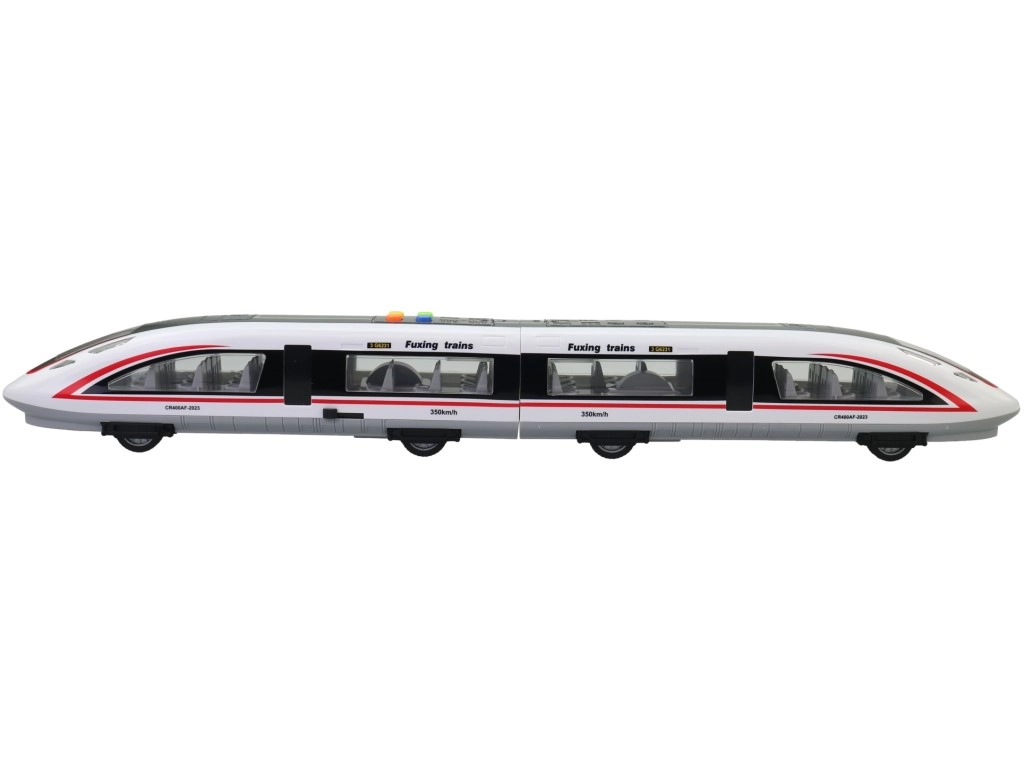 Ta otroški model modernega hitrega vlaka prinaša realistične podrobnosti – prozorna okna s sedeži, vrata, aerodinamične linije in potisk hitrosti 350 km/h. Na strehi so barvni gumbi za aktivacijo svetlobnih in zvočnih učinkov, ki spodbujajo domišljijo in vsako vožnjo spremenijo v nepozabno doživetje.