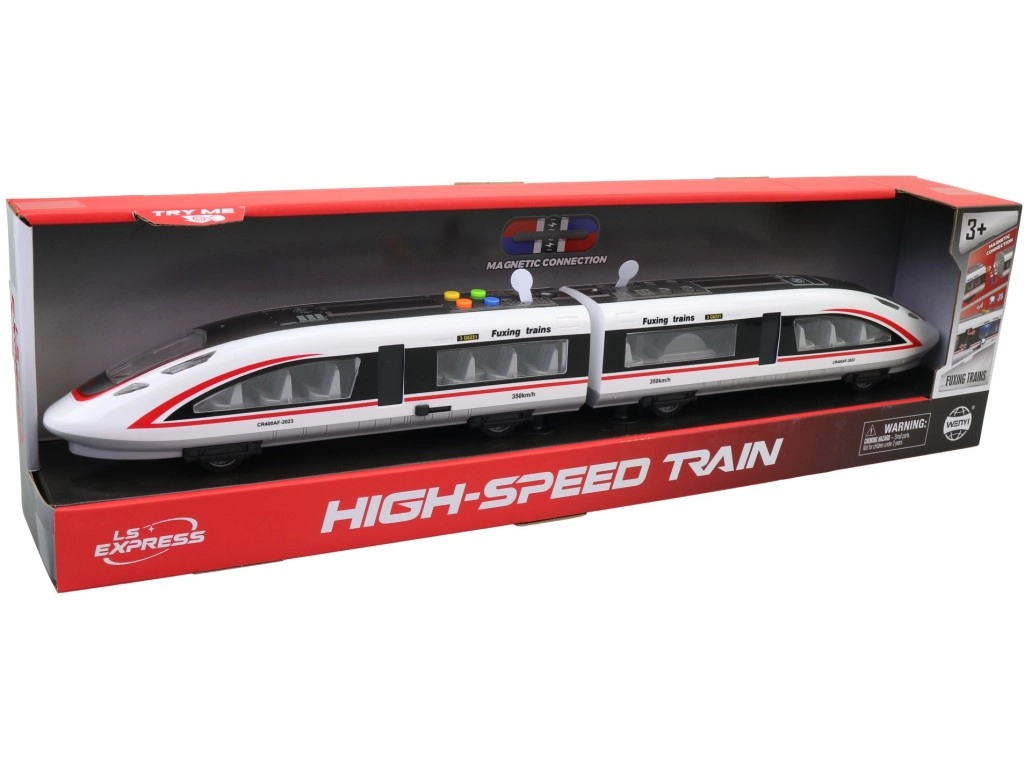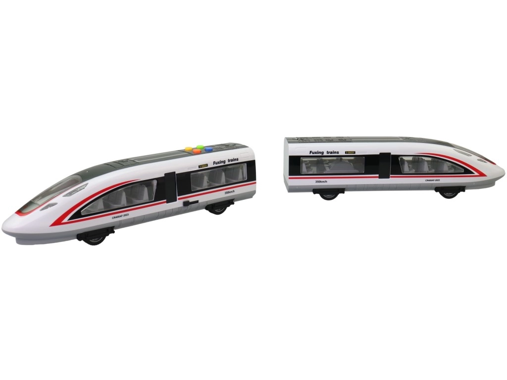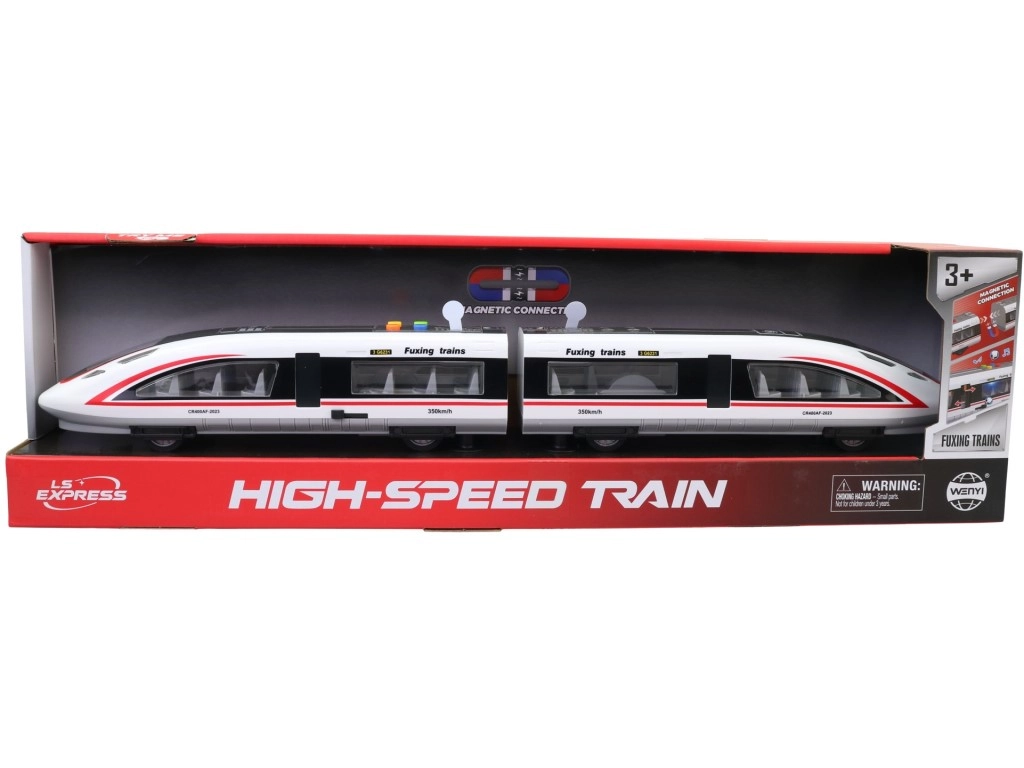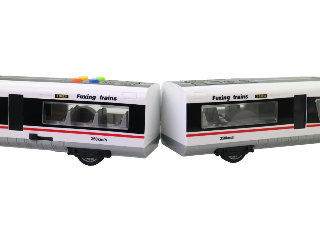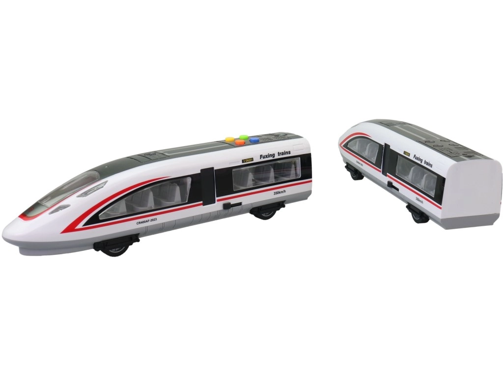 Ta otroški model modernega hitrega vlaka prinaša realistične podrobnosti – prozorna okna s sedeži, vrata, aerodinamične linije in potisk hitrosti 350 km/h. Na strehi so barvni gumbi za aktivacijo svetlobnih in zvočnih učinkov, ki spodbujajo domišljijo in vsako vožnjo spremenijo v nepozabno doživetje.