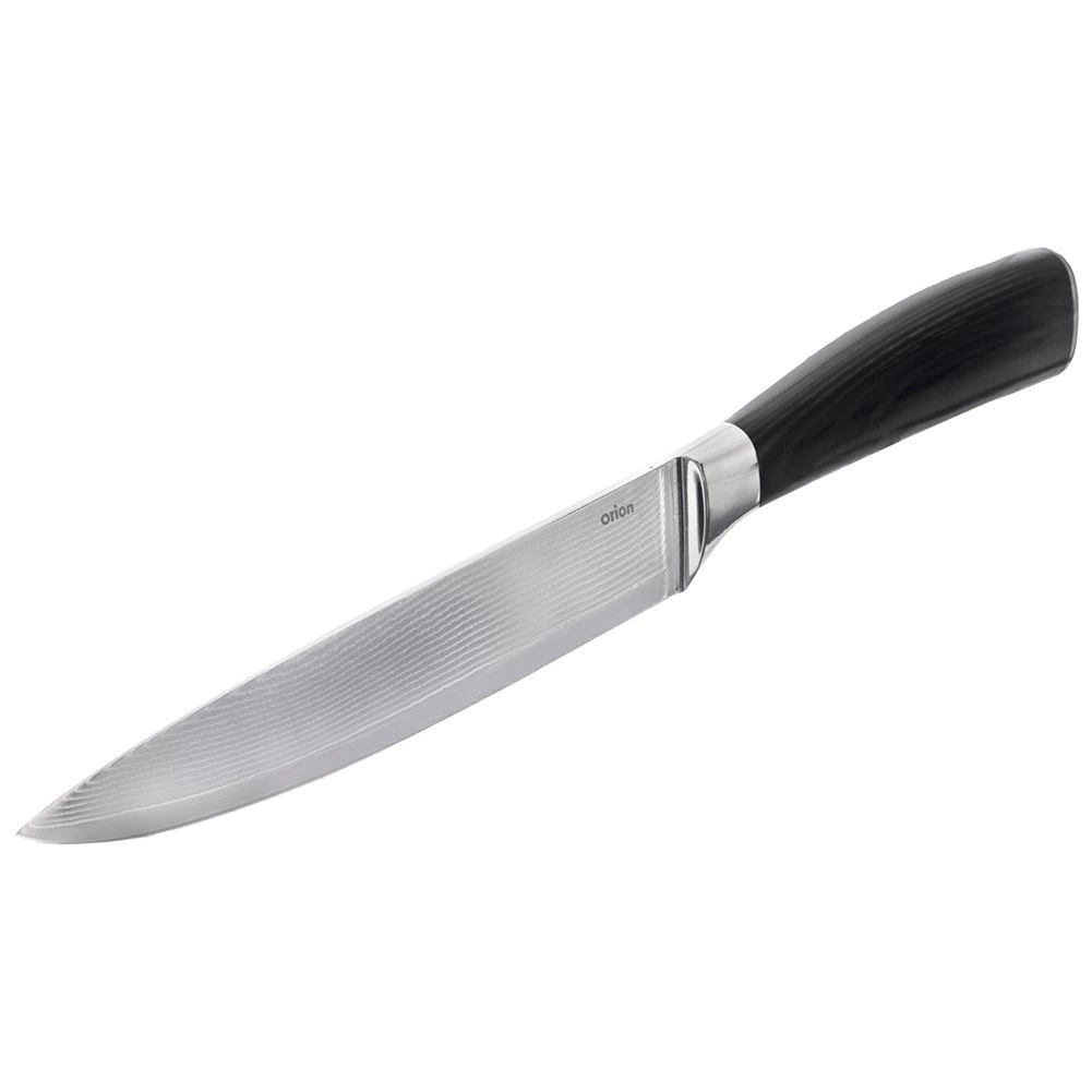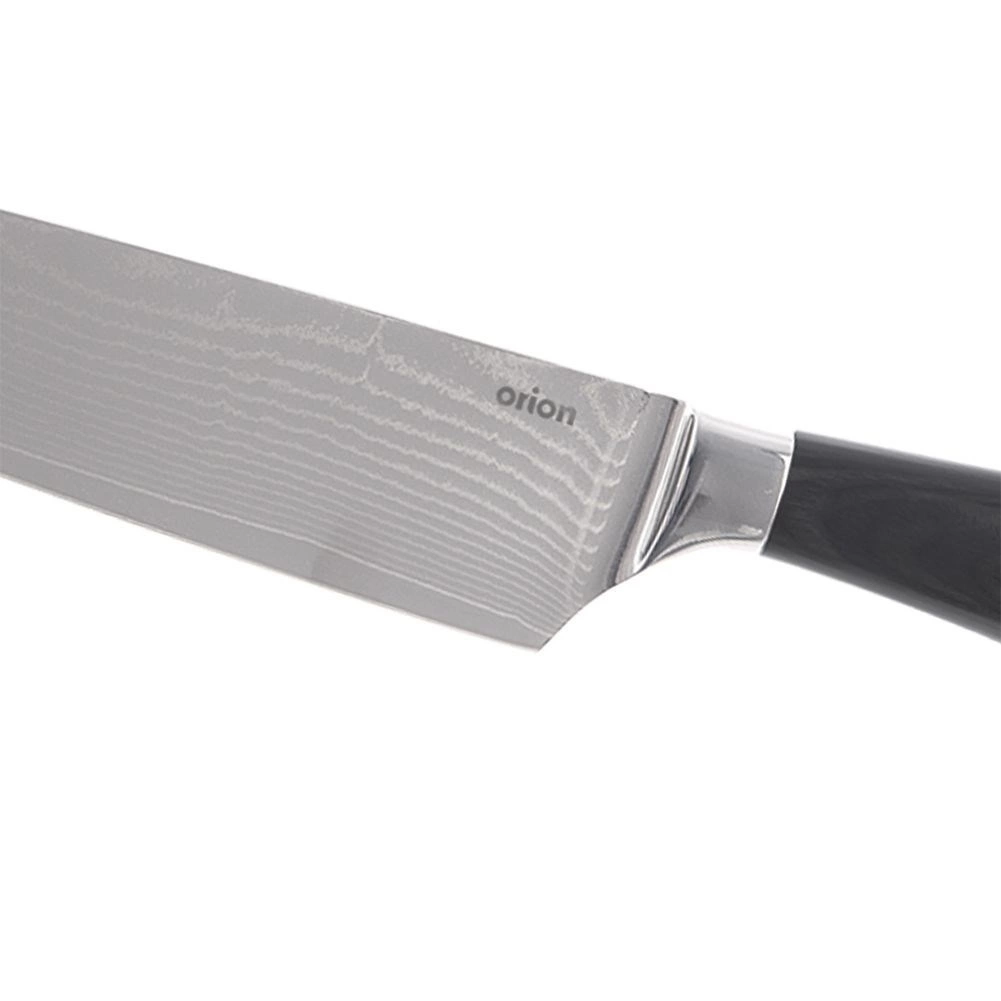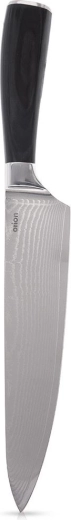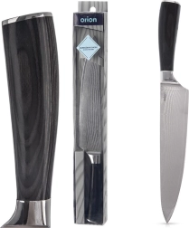 Univerzalni kuharski nož iz damaščanskega jekla z dolžino 33,5 cm in 20 cm rezilom ponuja precizno rezanje in sekljanje sadja, zelenjave in mesa. Ergonomičen ročaj iz pakka lesa odlično sede v roko, je odporen proti vlagi in kemikalijam. 67 plasti jekla zagotavlja izjemno ostrino, trpežnost in značilen vzorec na rezilu. Primeren za domačo in profesionalno uporabo.