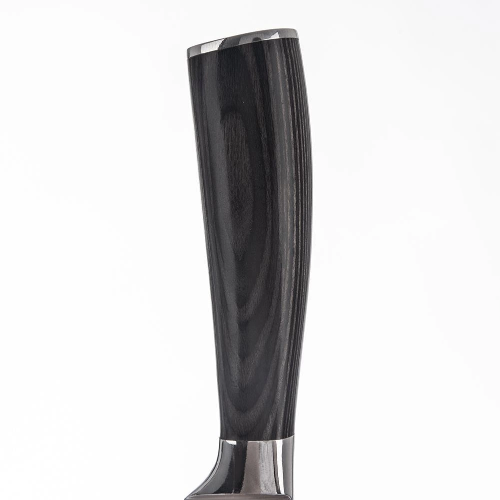 Ročaj iz pakka lesa je oblikovan za zanesljiv oprijem ter je odporen proti vlagi, toploti in delovanju običajnih kuhinjskih sredstev. Nož je idealen za sekljanje zelišč, rezanje sadja in zelenjave ter porcioniranje mesa, pri čemer si ob pravilni negi dolgoročno ohranja ostrino.
