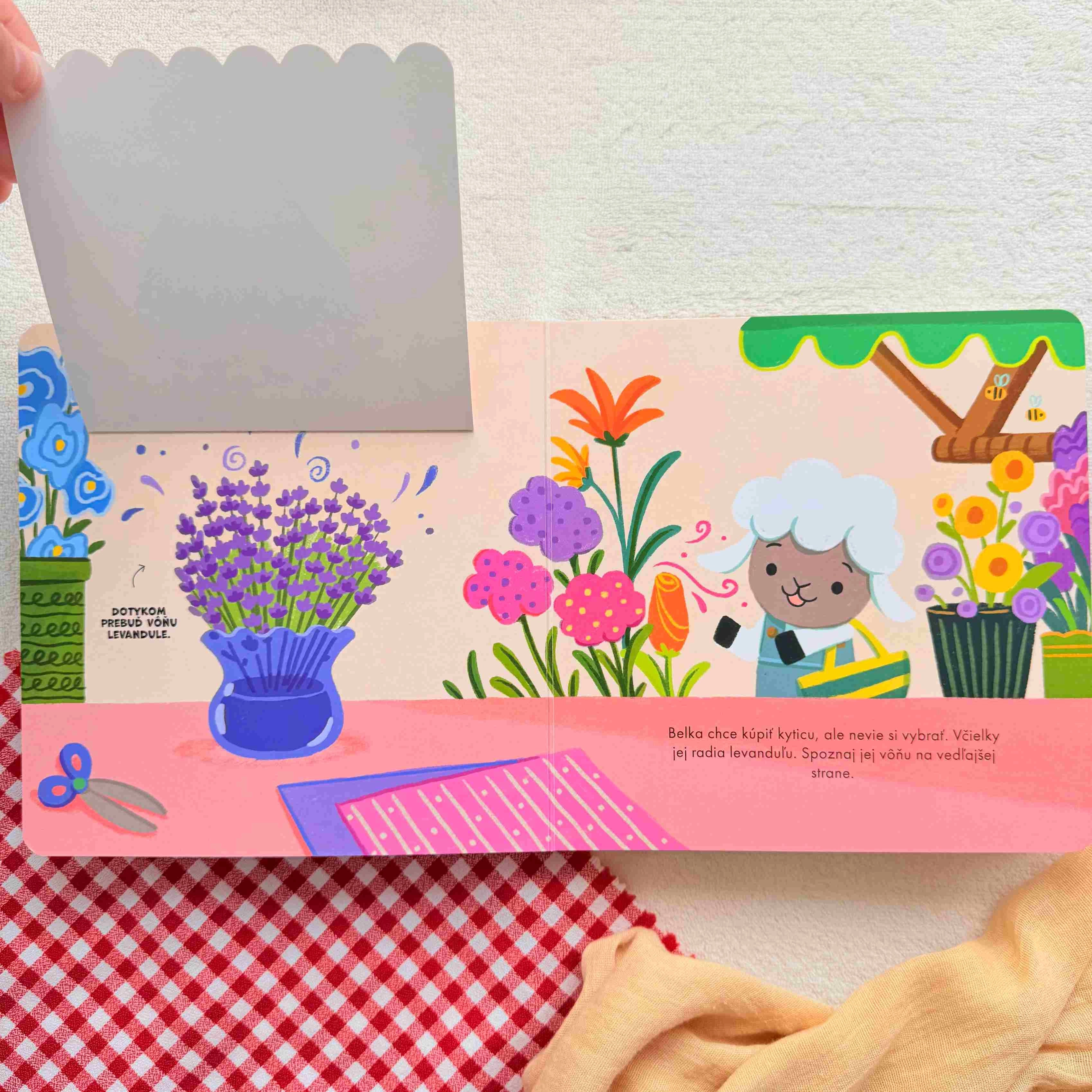 Odkrijte čarobno dišečo knjigo, v kateri se ovčka Belka odpravi nakupovat na kmečko tržnico. Na vsaki dvojni strani se skriva realističen vonj sadja ali zelenjave – dovolj je lahek dotik strani in prisloniti nos. Branje se spremeni v interaktivno zabavo, ki spodbuja radovednost, razvija domišljijo in gradi pozitiven odnos do knjig.