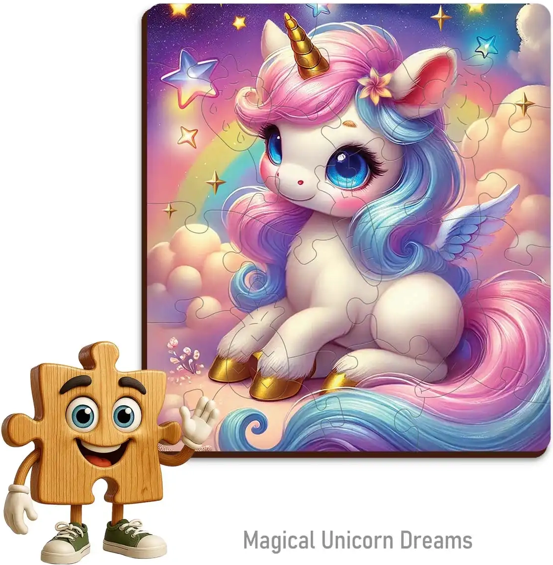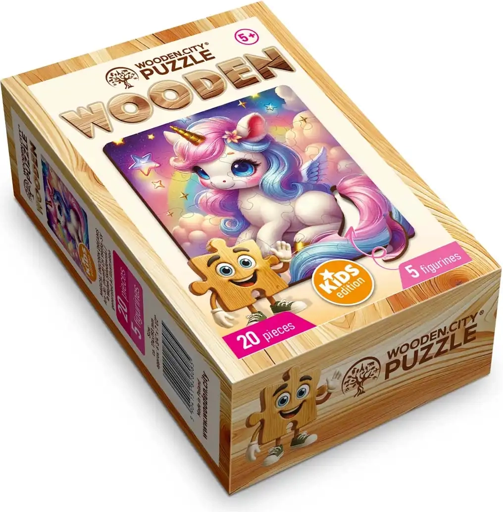 Ta set je odlično darilo za otroke, ki imajo radi samoroge in želijo vaditi sestavljanje s kakovostnimi lesenimi puzzli WOODEN CITY.