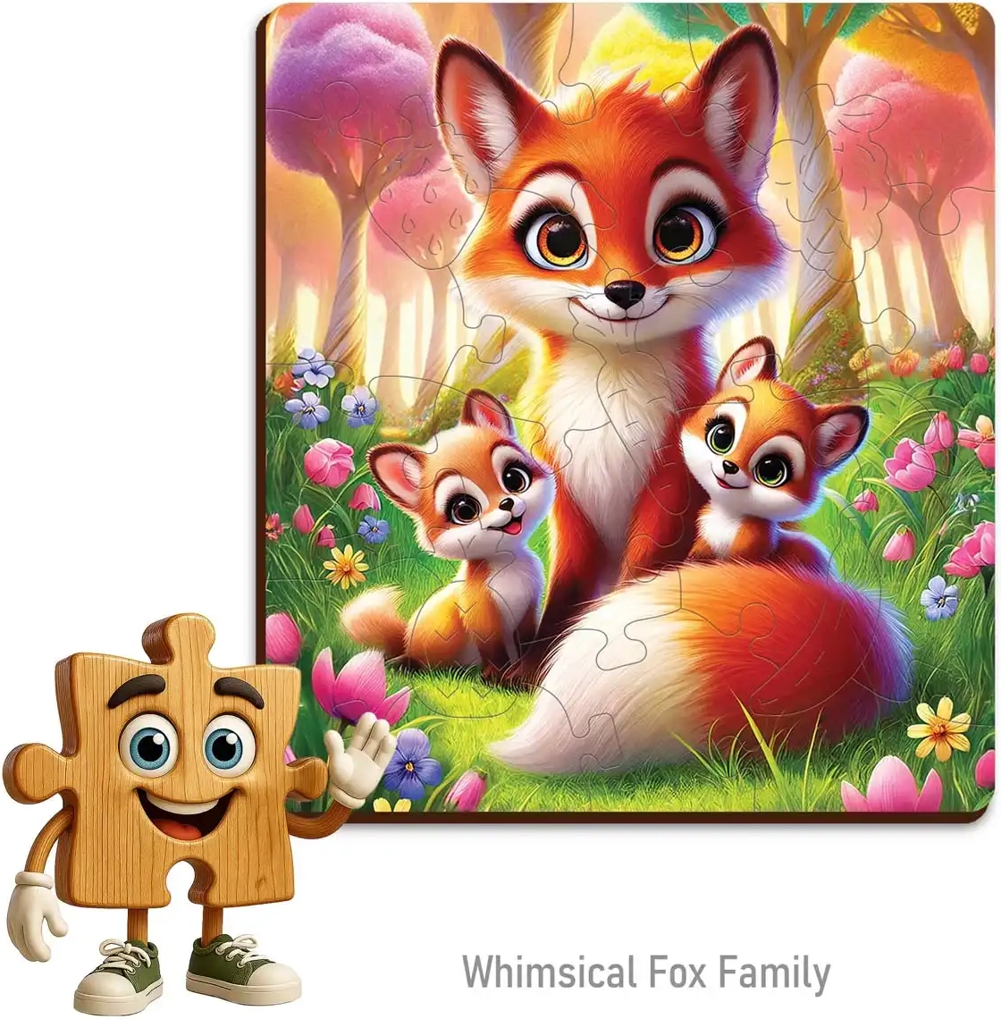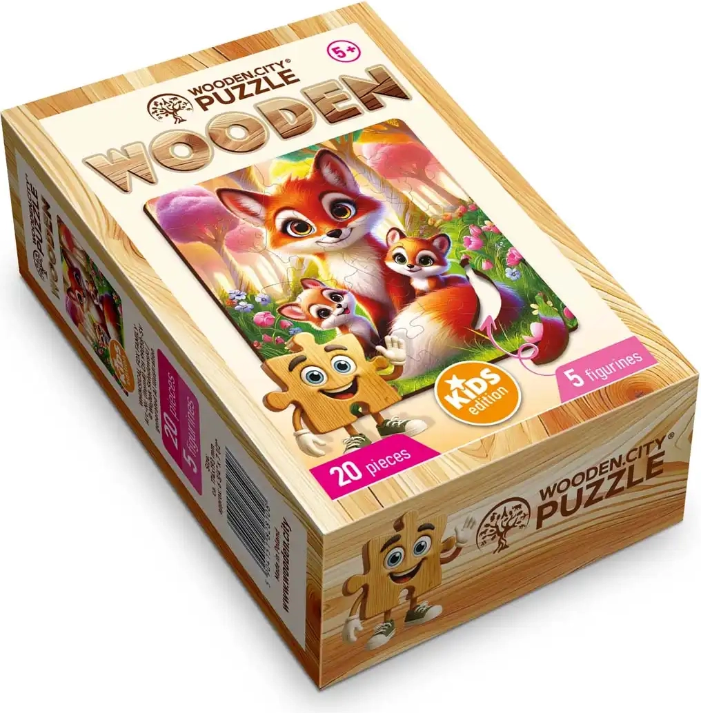 Lesene puzzle WOODEN CITY z motivom lisje družine bodo razveselile vsakega malega ljubitelja živali. Zaradi skrbno izrezanih koščkov se odlično sestavljajo in ustvarjajo očarljivo sceno, ki otroke motivira k nadaljnjemu raziskovanju.