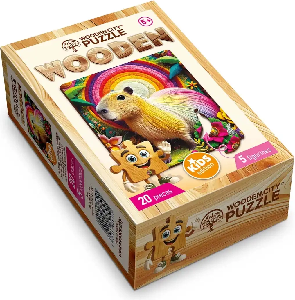 Ta prikupna sestavljanka z motivom kapibare prinaša otrokom veselje ob sestavljanju in občutek uspeha po dokončanju slike. Zaradi kakovostne izdelave so kosi trpežni, natančni in prijetni na otip. Odlična kot darilo in kot prvi korak v svet lesenih sestavljank.