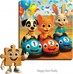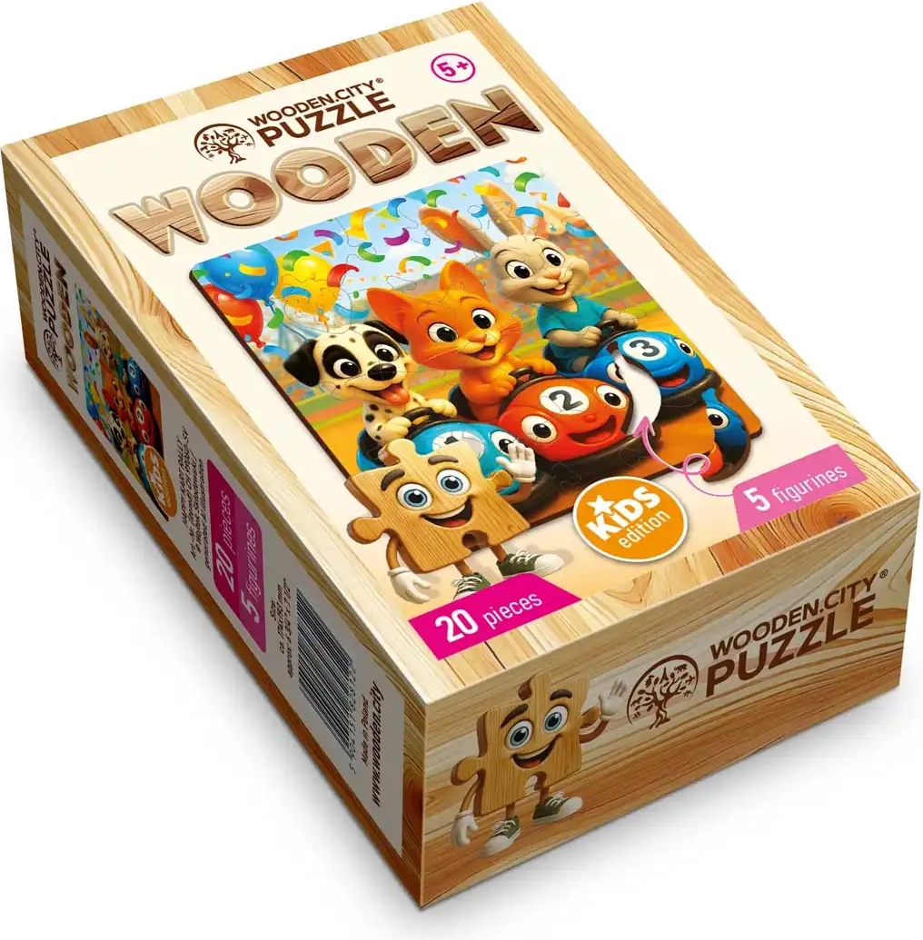 Lesene sestavljanke Srečna dirka blagovne znamke WOODEN CITY so odlična izbira za prve korake v sestavljanju. Zahvaljujoč natančni laserski obdelavi imajo kosi popolnoma gladke robove in lepo se prilegajo drug k drugemu. Del pakiranja je samostojna predloga, ki otrokom pomaga sestaviti očarljivo dirkalno sceno.