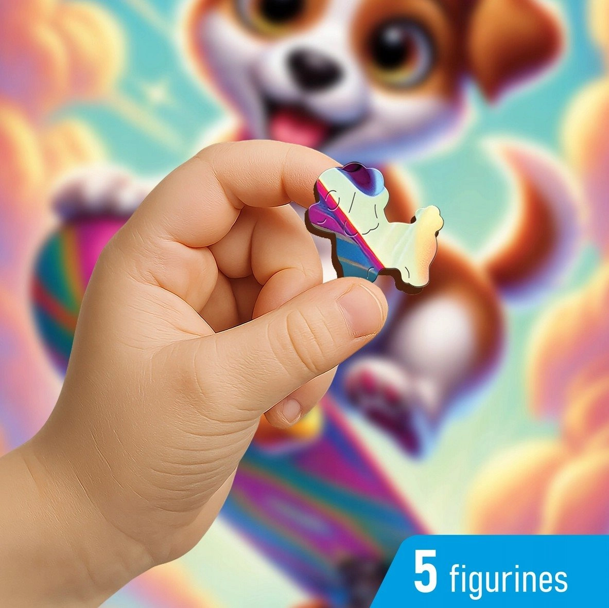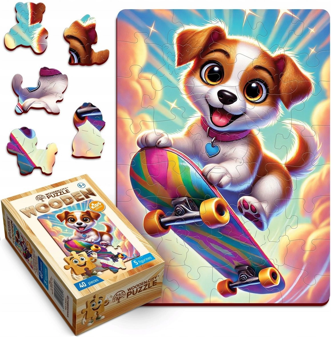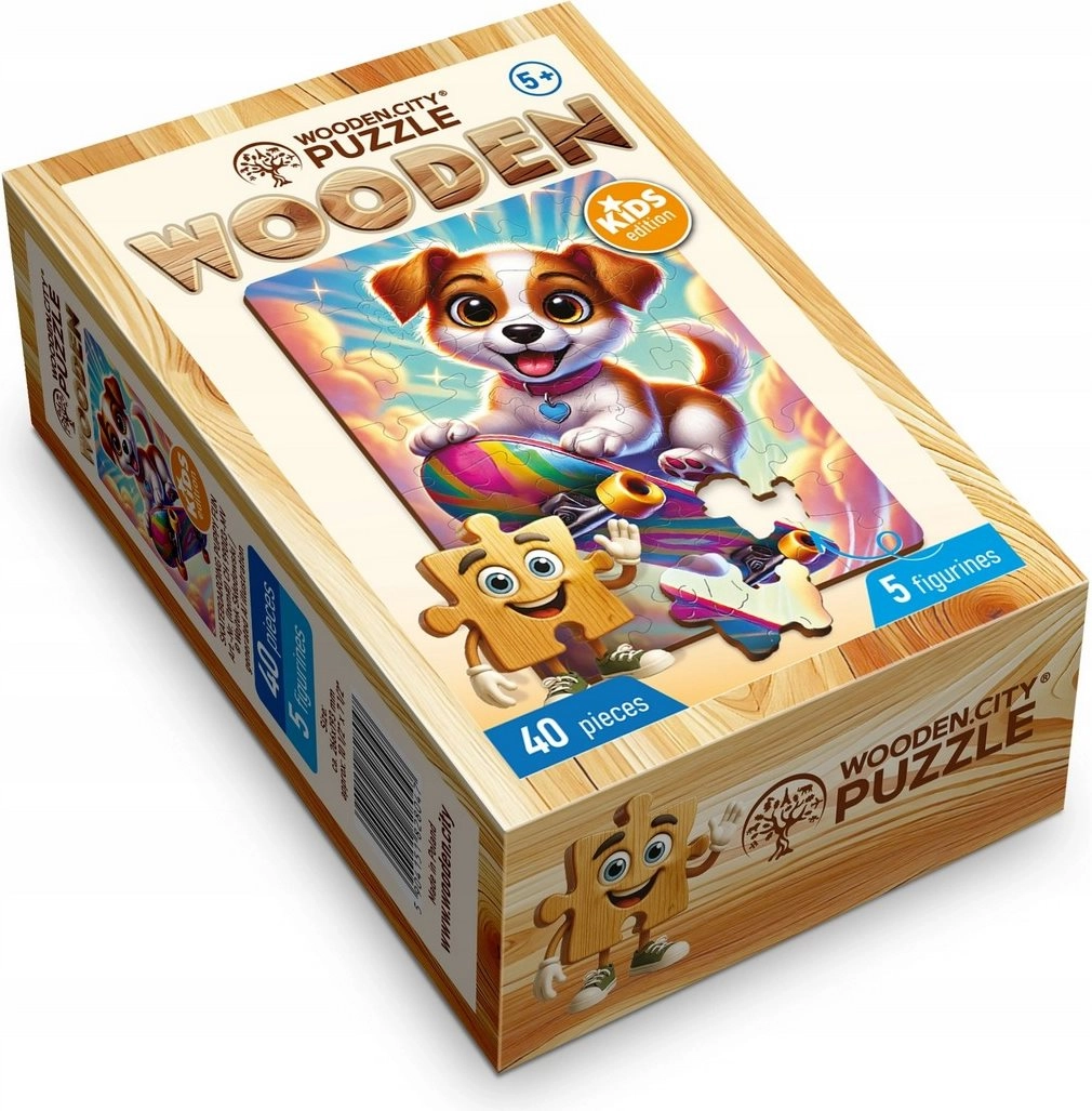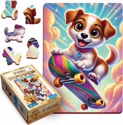 Lesena sestavljanka s kužkom na rolki je odlična izbira za otroke, ki imajo radi ustvarjalno igro. Kakovosten material in skrbna izdelava zagotavljata prijetno sestavljanje in dolgo življenjsko dobo. Del pakiranja je tudi samostojna predloga, ki otrokom olajša začetke.