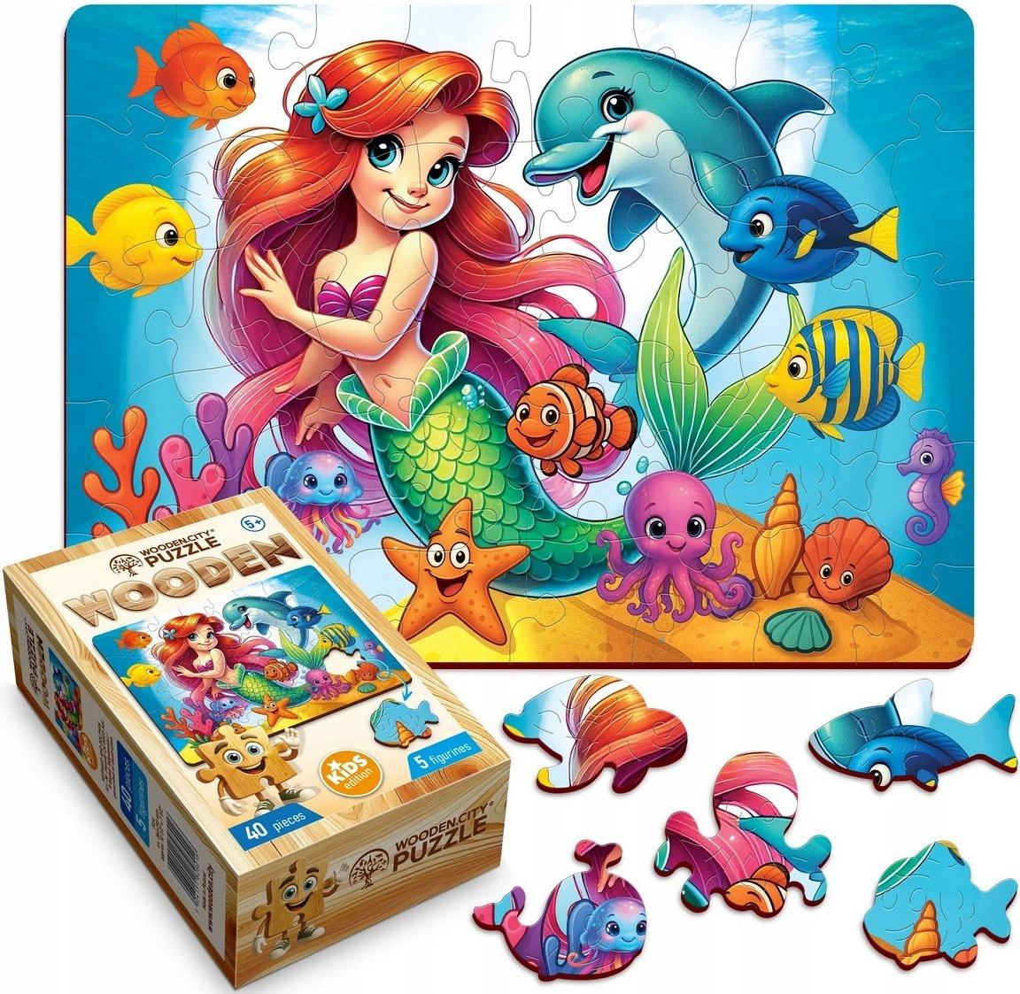 Lesene sestavljanke WOODEN CITY z motivom morske vile in delfina prinašajo otrokom čudovito vizualno izkušnjo in veselje ob dokončani podobi. Zaradi kakovostne izdelave se kosi prijetno sestavljajo in odlično prilegajo. Sestavljena slika meri približno 26,6 × 19,3 cm, idealno za večkratno sestavljanje ali razstavitev.