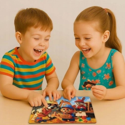 Puzzle spodbujajo koordinacijo roke in oči, potrpežljivost ter logično razmišljanje – idealna namizna aktivnost za mirno ali skupno igro.
