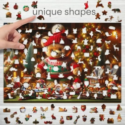 Odkrijte veselje do sestavljanja z lesenimi puzzli s čarobnim božičnim motivom medvedka v pleteni kapi in puloverju. Kakovostni leseni koščki z gladkimi robovi, izrezanimi z laserjem, se popolno prilegajo in zagotavljajo dolgo življenjsko dobo. Končna slika mere približno 54 × 39,4 cm bo čudovita sezonska dekoracija.