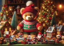 Barvita praznična scena z medvedkom, mini hiškami, drevesci in vlakcem zagotavlja pravo božično atmosfero – idealno tudi kot dekoracija po sestavljanju.