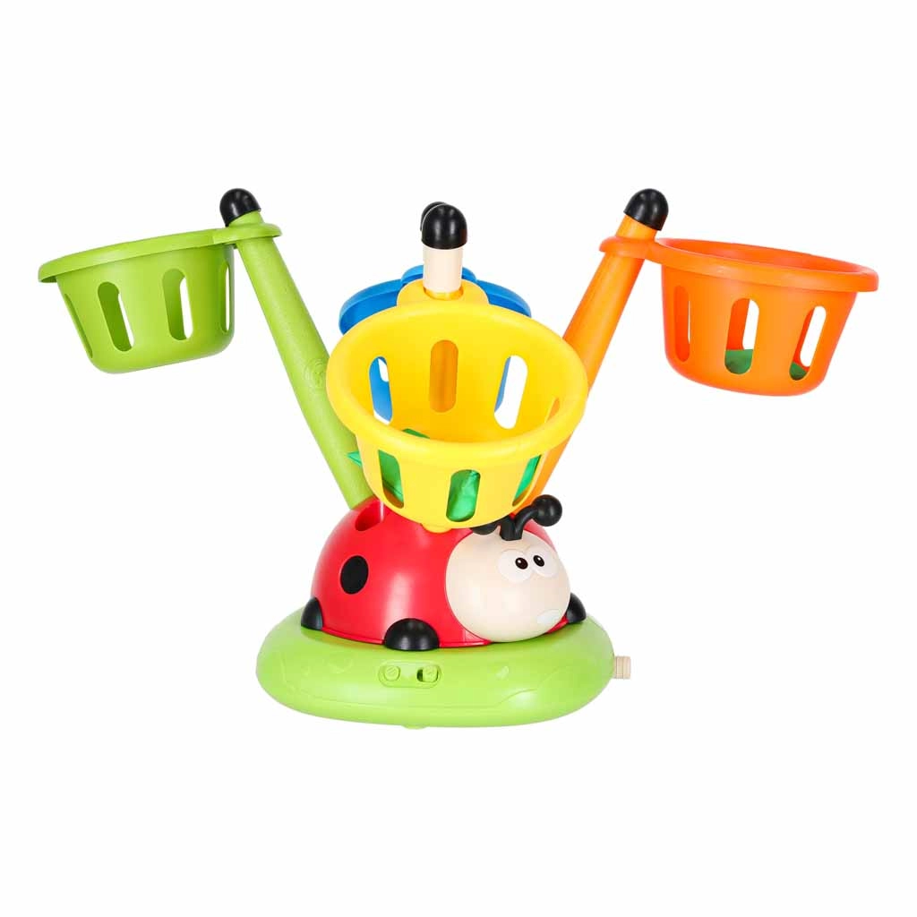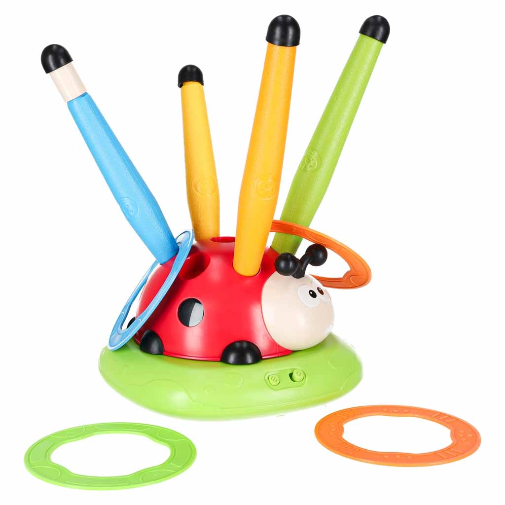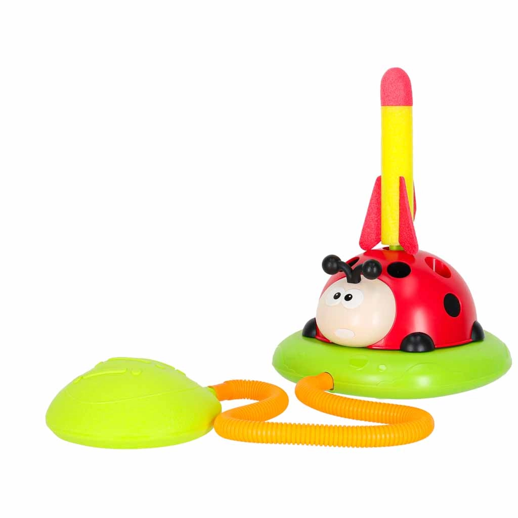 Igra, ki ne pusti sedeti: vrteča se skakalna ovira preizkusi odzivnost, zračni izstreljevalnik izstreli rakete v zrak, met na cilj pa doda kanček športnega tekmovanja. Interaktivna pikapolonica z lučmi in zvoki motivira k gibanju in vsako rundo spremeni v nov izziv.