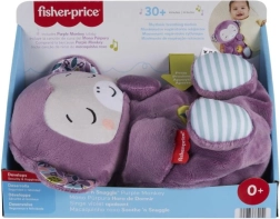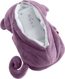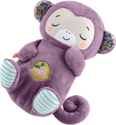Ta ljubka vijolična plišasta opička je zasnovana za pomirjanje in lažje uspavanje dojenčkov. Združuje nežne svetlobne učinke, prijetne melodije, zvoke narave in beli šum z ritmičnim »dihanjem«, ki pomaga otrokom, da se sprostijo in počutijo varno.