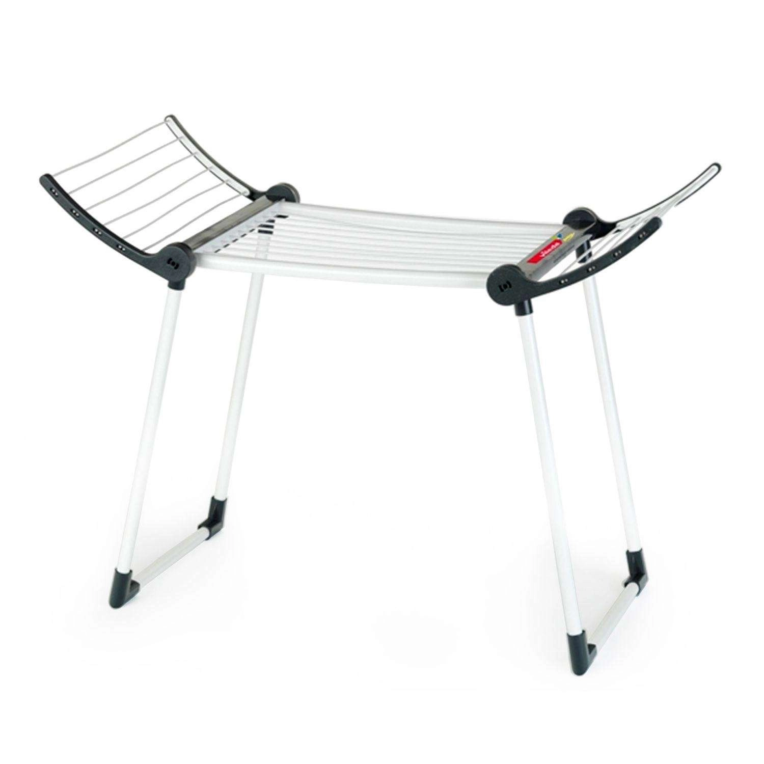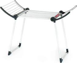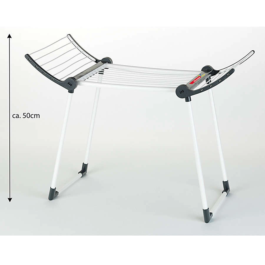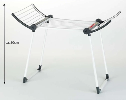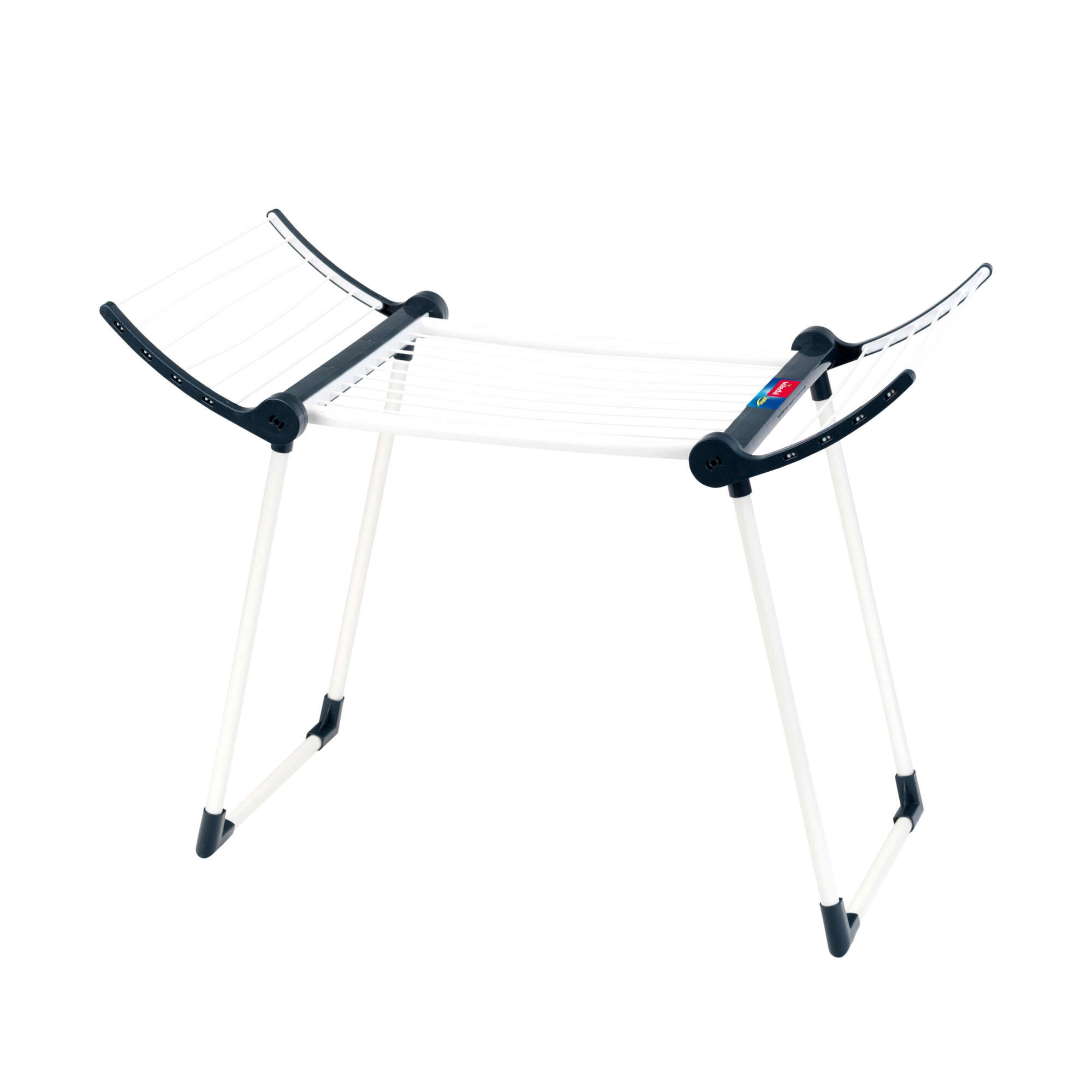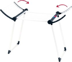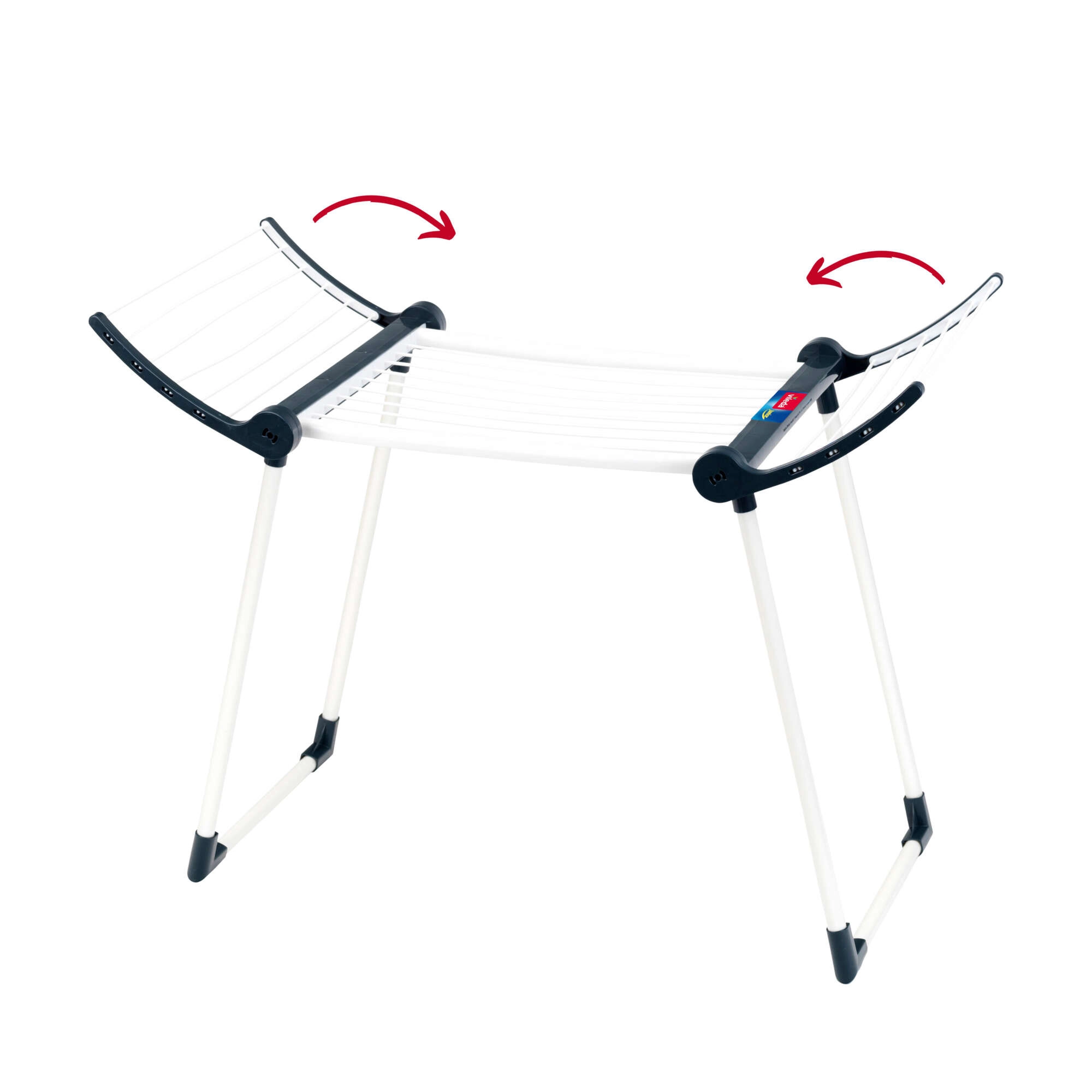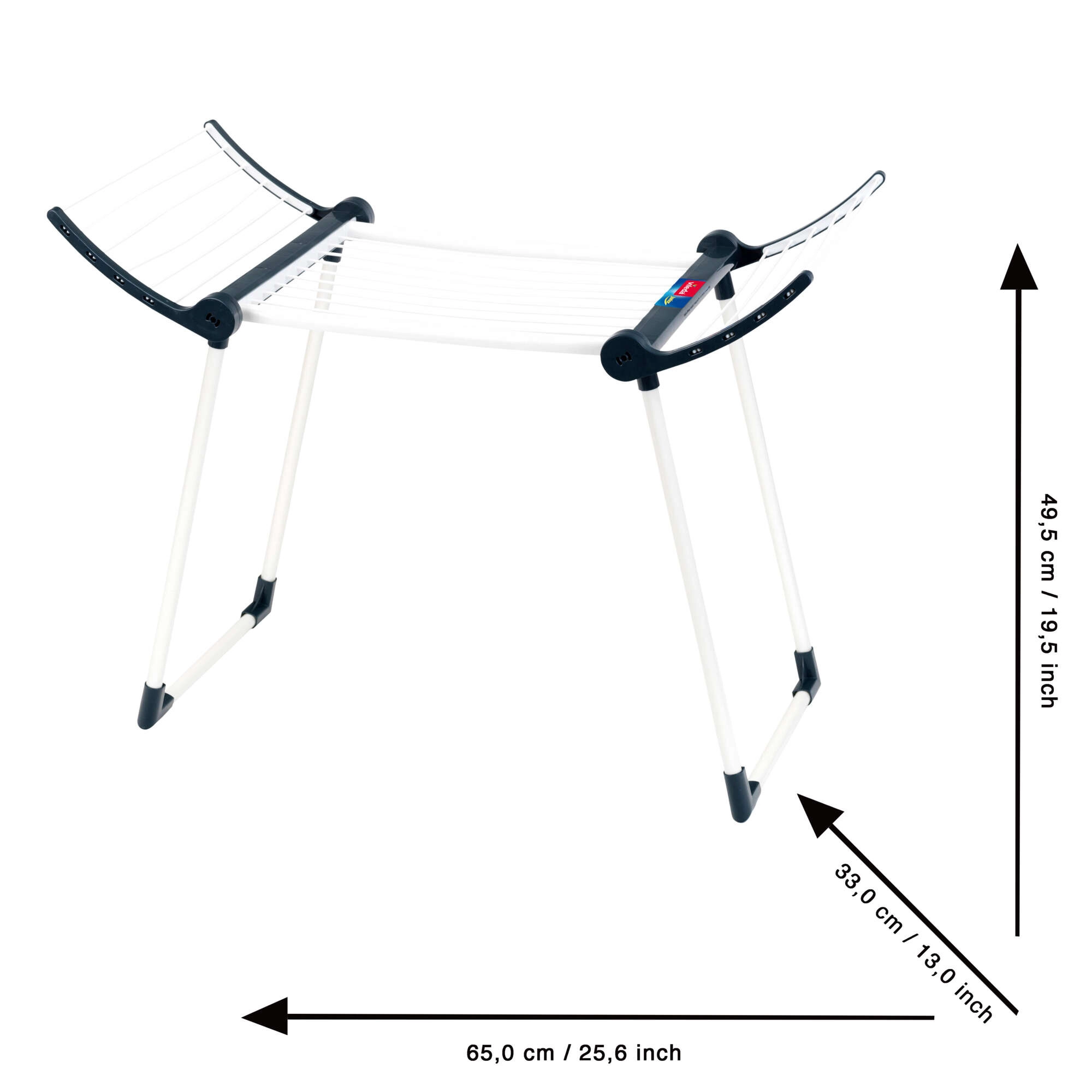 Konstrukcija je čvrsta in stabilna zahvaljujoč dvojnim nogam, sušilnik je v beli barvi s črnimi elementi in ima dve zložljivi stranski krili za več sušilne površine. Po igri ga zlahka zložite v kompaktne dimenzije, zato prihranite prostor v otroški sobi.