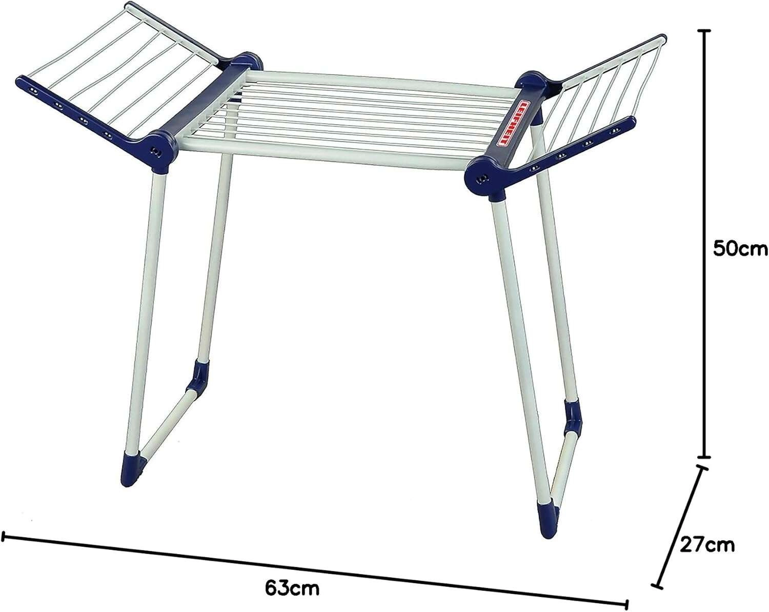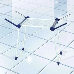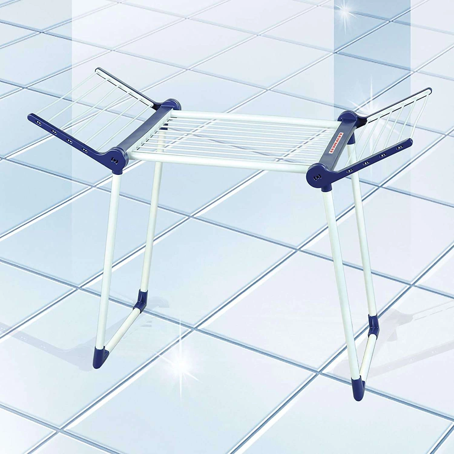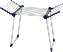 Konstrukcija z dvojnimi nogami zagotavlja dobro stabilnost, dve izklopni stranski krili pa občutno povečata sušilno površino. Nizka teža in otrokom prilagojene proporcije olajšajo uporabo in prenašanje.