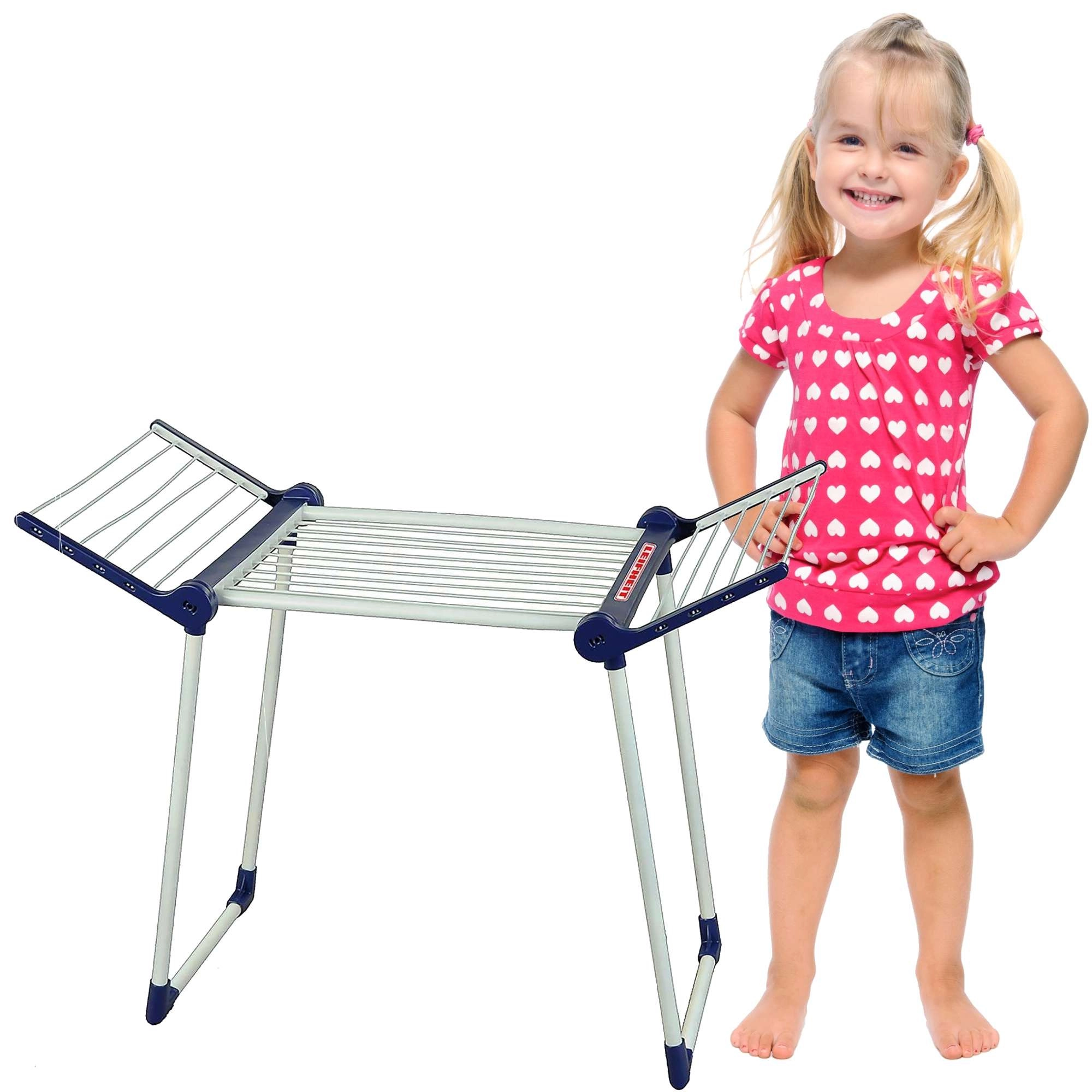 To otroško stojalo je zvesta kopija pravega stojala LEIFHEIT, zato otrokom ponuja realistično igro gospodinjstva v popolnoma varnih pogojih. Zahvaljujoč zložljivemu dizajnu ga je enostavno pospraviti in ne zavzema prostora, ko se otrok ne igra.