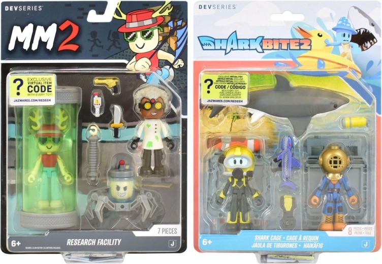 Vstopite v svet ROBLOX s tematskim kompletom, navdihnjenim z edicijo Shark Bite 2. Dve akcijski figuri potapljačev (Diver in Deep Sea Diver) dopolnjuje dovršena morska kletka za sestavljanje in figura velikega belega morskega psa, ki vsaki sceni doda napetost. Zahvaljujoč ekskluzivni kodi si dodatno odklenete virtualno vsebino in razširite svoje možnosti igranja.