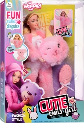 Prisrčna punčka Emi znamke WOOPIE ROYAL očara z rožnatim, mehkým medvedjim kostumom s kapuco. Ima mehko izvedbo, premične okončine in je odlična za igro, cartanje ter ustvarjanje zgodb. Priložen je glavnik za lase, s katerim bo njena pričeska vedno popolna.