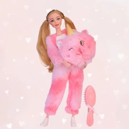 Spoznajte punčko, ki bo osvojila srce vsakega otroka. Emi iz kolekcije WOOPIE ROYAL nosi mehkužen, kosmat kostum v rožnati barvi s kapuco v obliki živalice, zato deluje ne le prisrčno, temveč tudi modno. Zaradi skrbne izdelave in lepih detajlov je idealna prijateljica za vsakodnevno igro.